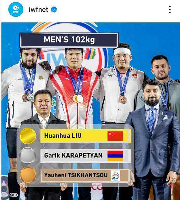 中国选手刘焕华获得IWF世界杯男子102公斤级冠军