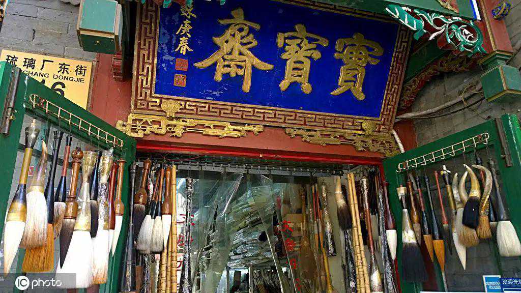 800米长琉璃厂,在清朝盛时有200多家店铺,多是古玩字画、书画装裱、文房四宝、金石篆刻方面的。有名的店铺有一得阁、清秘阁、汲古斋、宝荣斋等,而其中最有名的当然是现今也仍然鼎鼎大名的荣宝斋。
