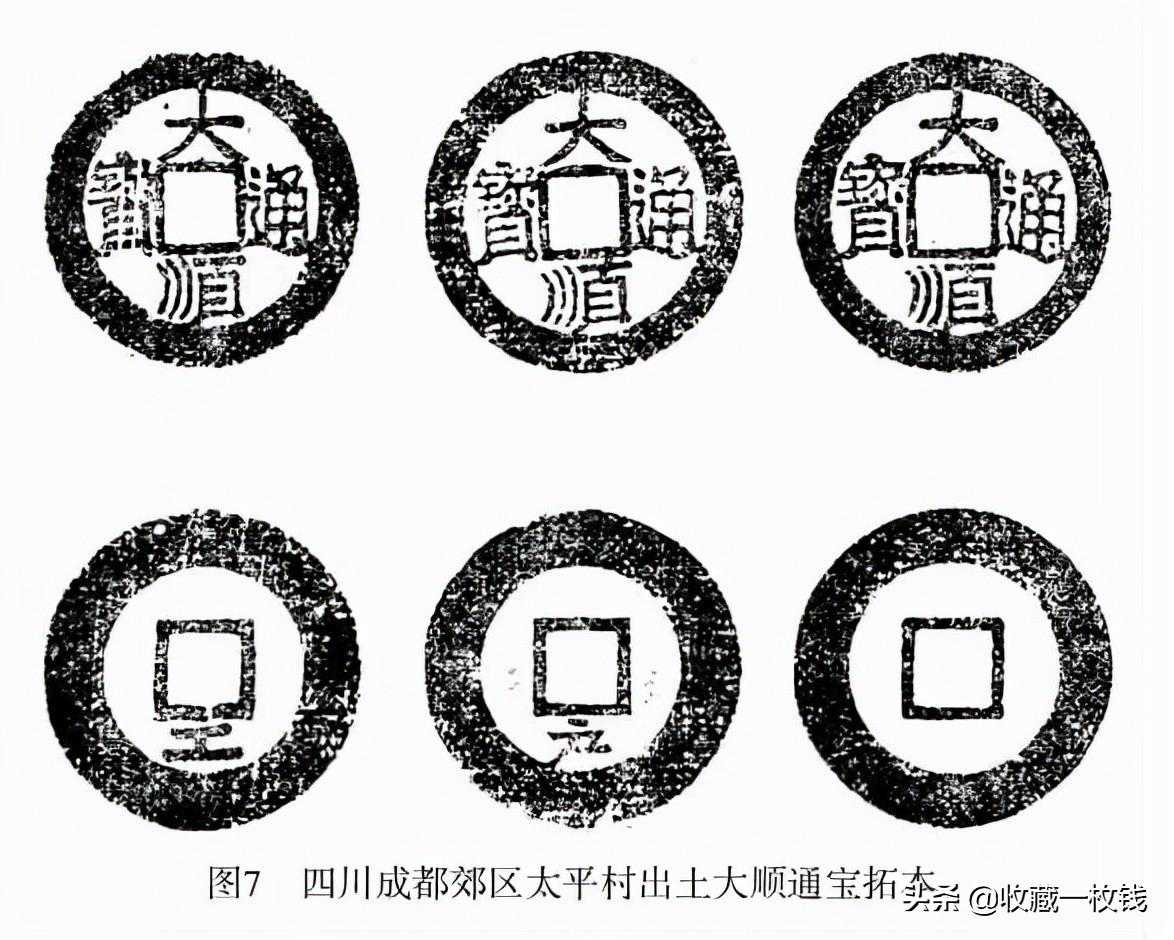 2.大顺通宝张献忠领导的农民起义军,1643年攻克武昌,占据楚王宫,设尚书、都督和巡抚等官职。1644年张献忠在成都称帝,定国号为“大西”,铸造“大顺通宝”铜钱。