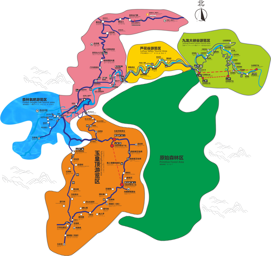 下午:九龙天桥→玻璃栈道→白龙吊桥→高山瀑布—白龙索道—返程