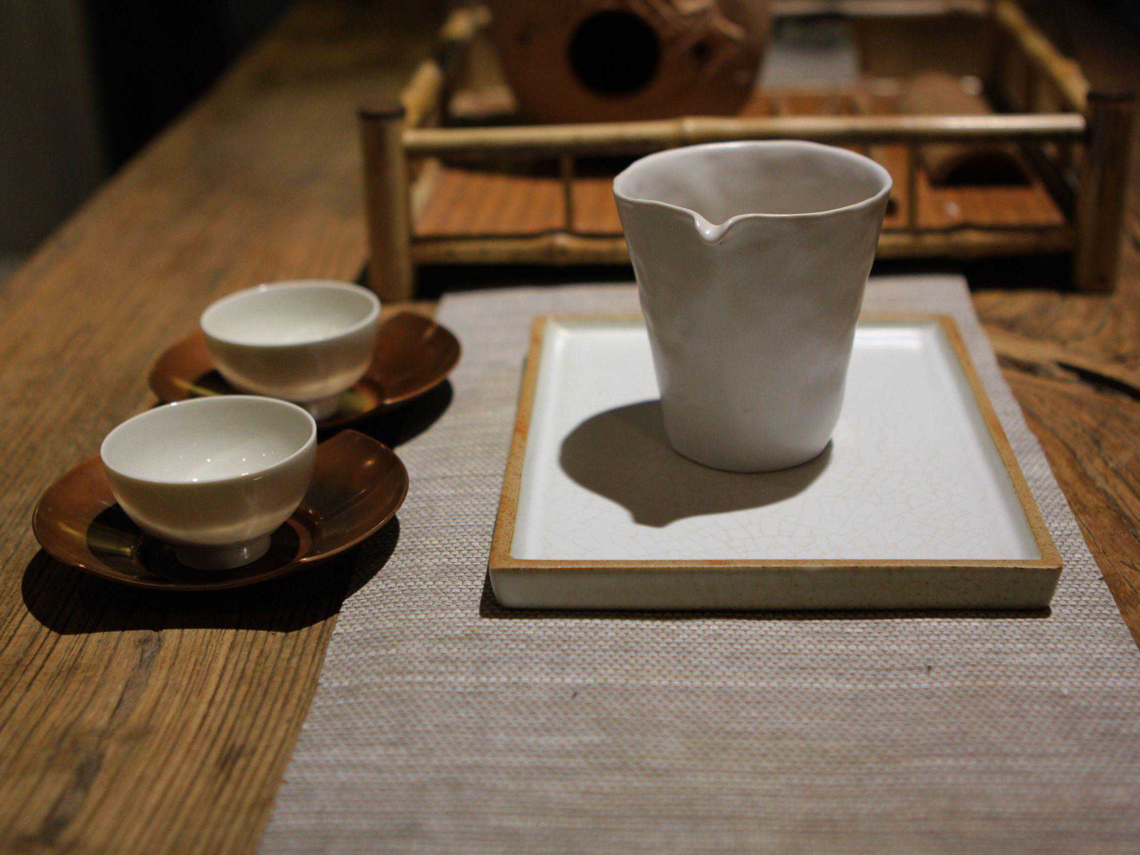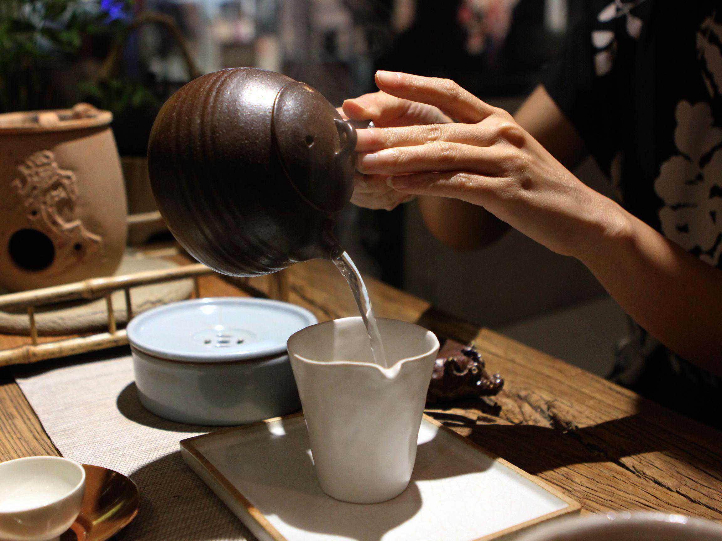 用砂器壶里煮的水依次沐浴公杯、品茗杯以提升茶器温度,促进茶香释放。