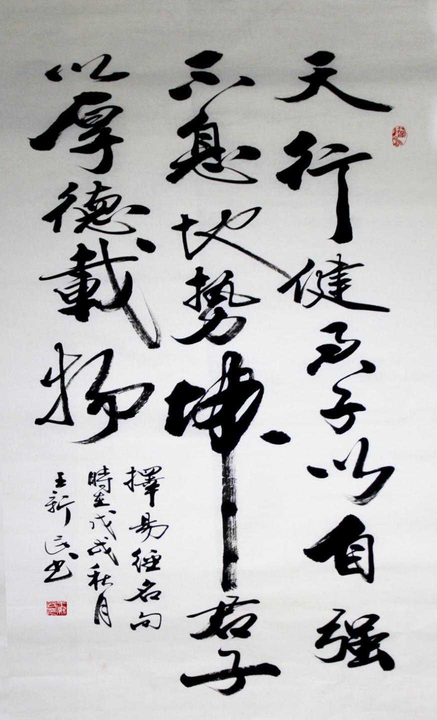 成功的书法家需具有扎实、多方面的专业素养并植根于传统。王新民师自然造化,悟民族精神,并将其作为自我追求与要求。他能够扎根传统文化,以传统文化做根,汲取营养,将书法与传统文化有机结合,同时紧随时代潮流,推陈出新。天道酬勤,王新民匠心独具,自成一格,在书艺路上隆隆日上。