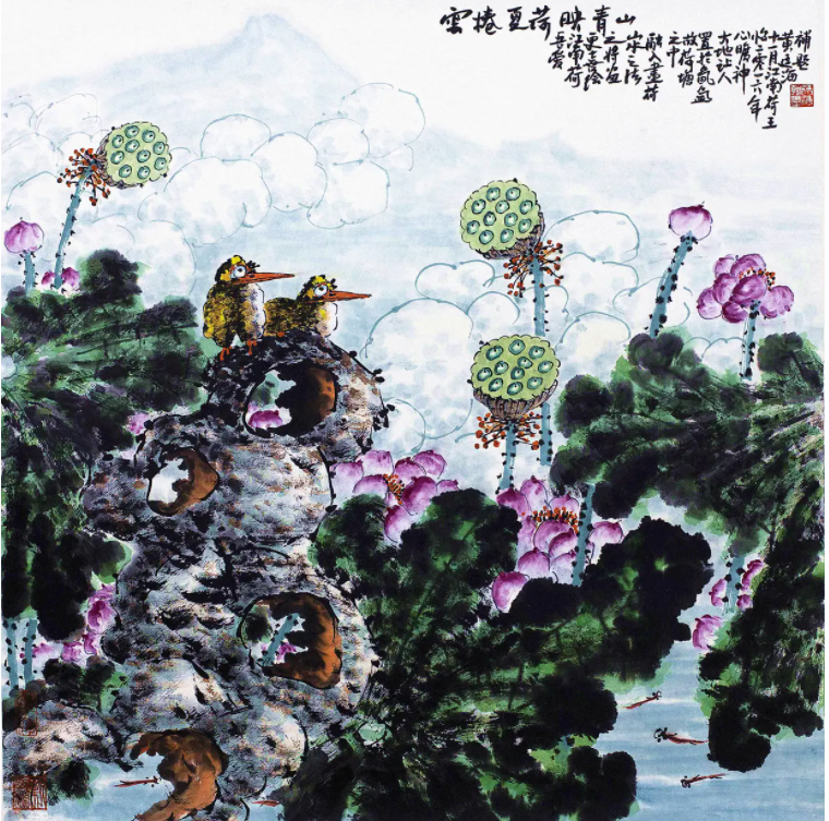 有黄家山水和江南荷王之誉的黄廷海,擅画山水、荷花,是金陵画派的著名传人和当代新南派山水画的创始人、中国山水画坛的代表人物之一。从艺60余年,黄廷海将传统与现代、南派与北派相融合,创造出让人耳目一新的风格。