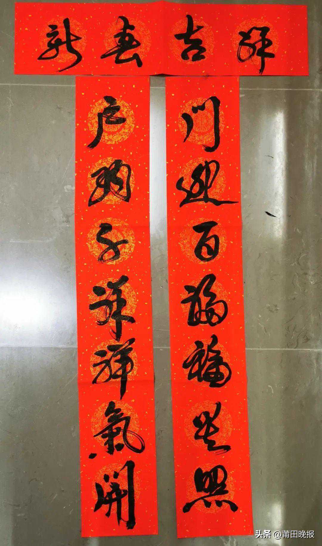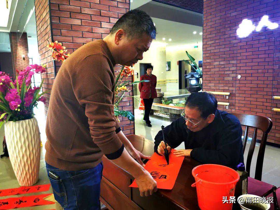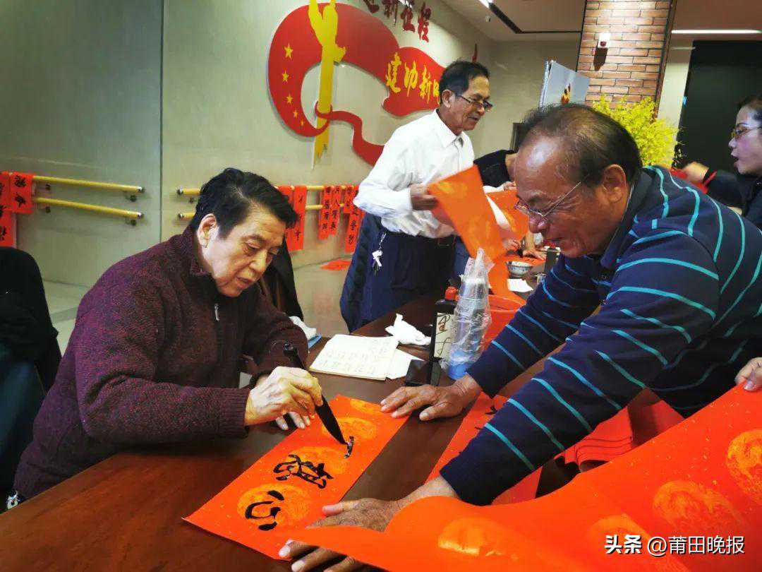 市老年书画艺术协会作为协办单位,派林杰、林祖勋、李福生、陈天福、陈金兴等书法老师在市老年文体教育中心一层大厅现场书写春联,翰墨飘香,福送万家,一对对大红的春联,字迹俊秀,各有神韵,展示了中华传统书法春联的艺术瑰丽和喜庆,表达了共筑中国梦,同绘华夏春,欢天喜地迎新年的主题,体现了老同志对国家未来发展充满信心和对美好生活的憧憬。