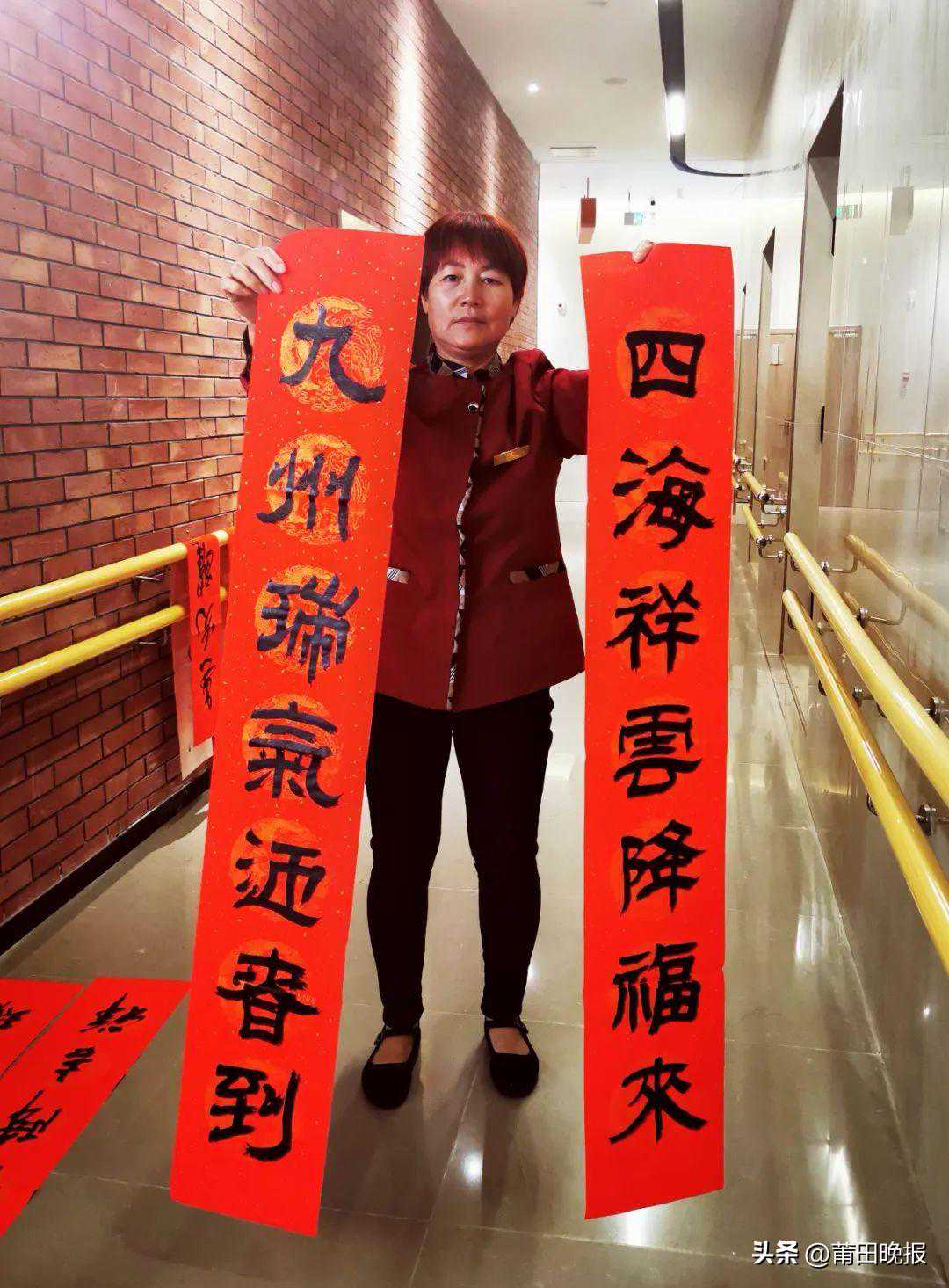 寓意美好的春联和饱含新年祝福的“福”字,让现场参加汇演活动的群众和老年大学师生、职工赞叹不已,纷纷排队等候领取,喜悦之情溢于言表。