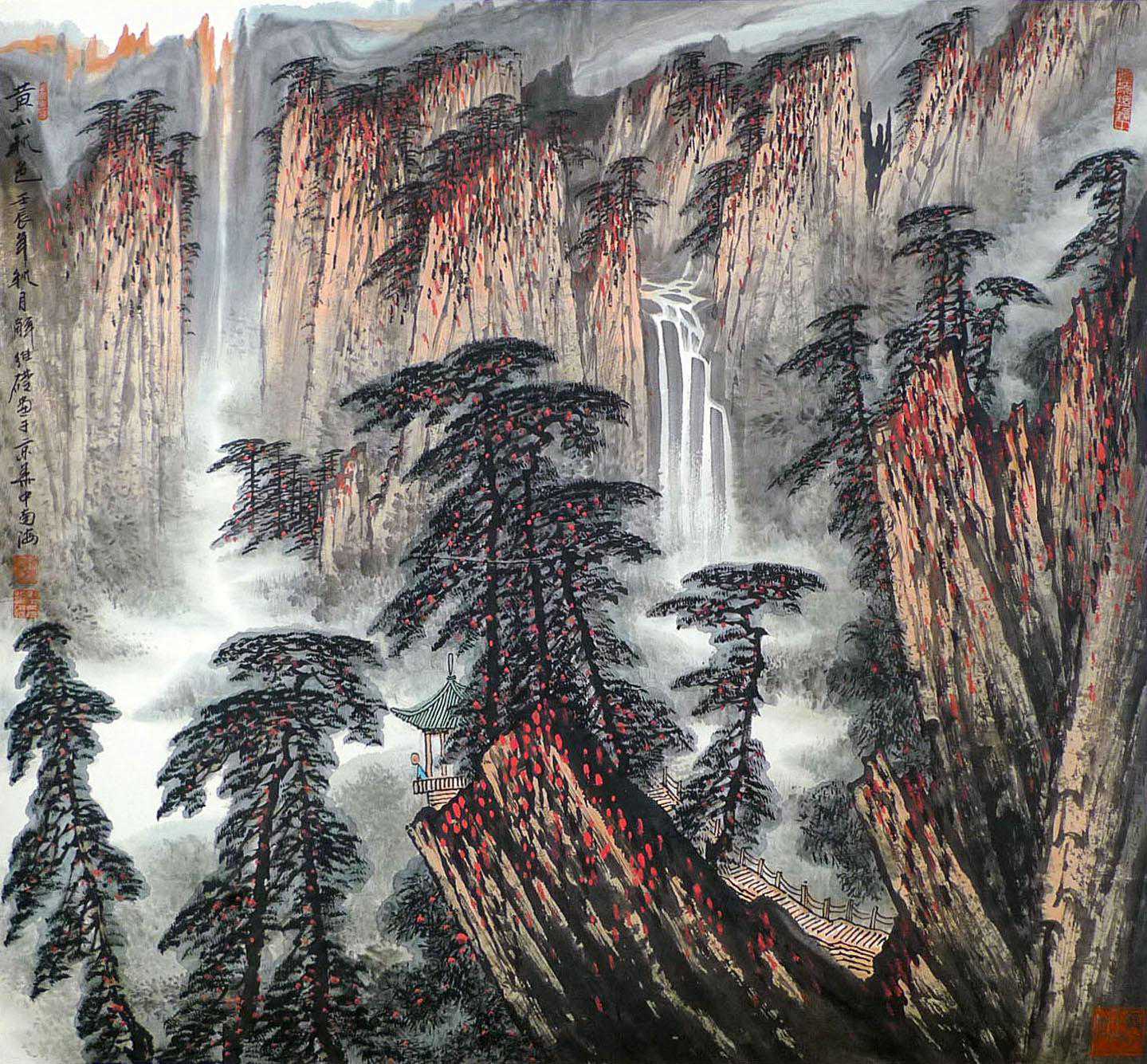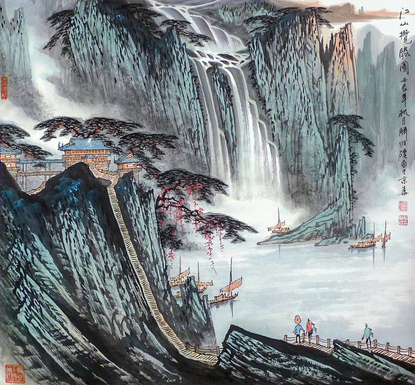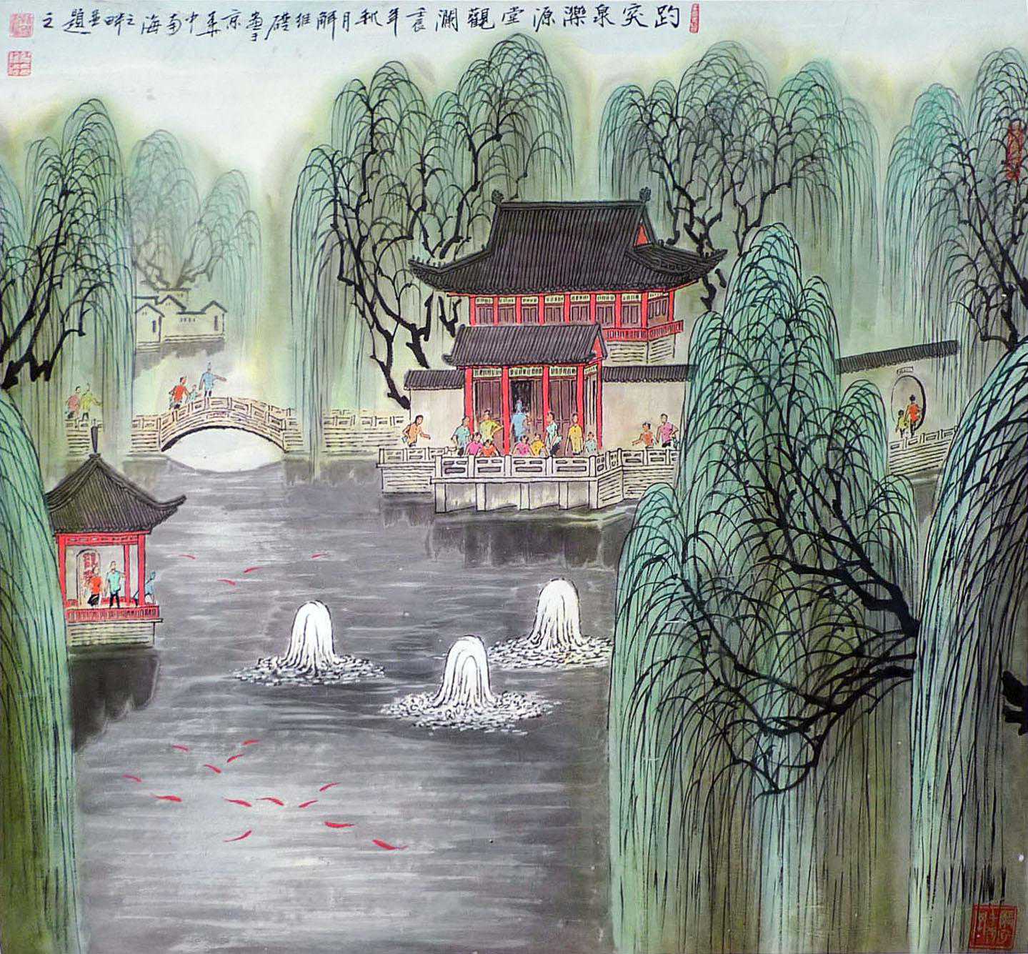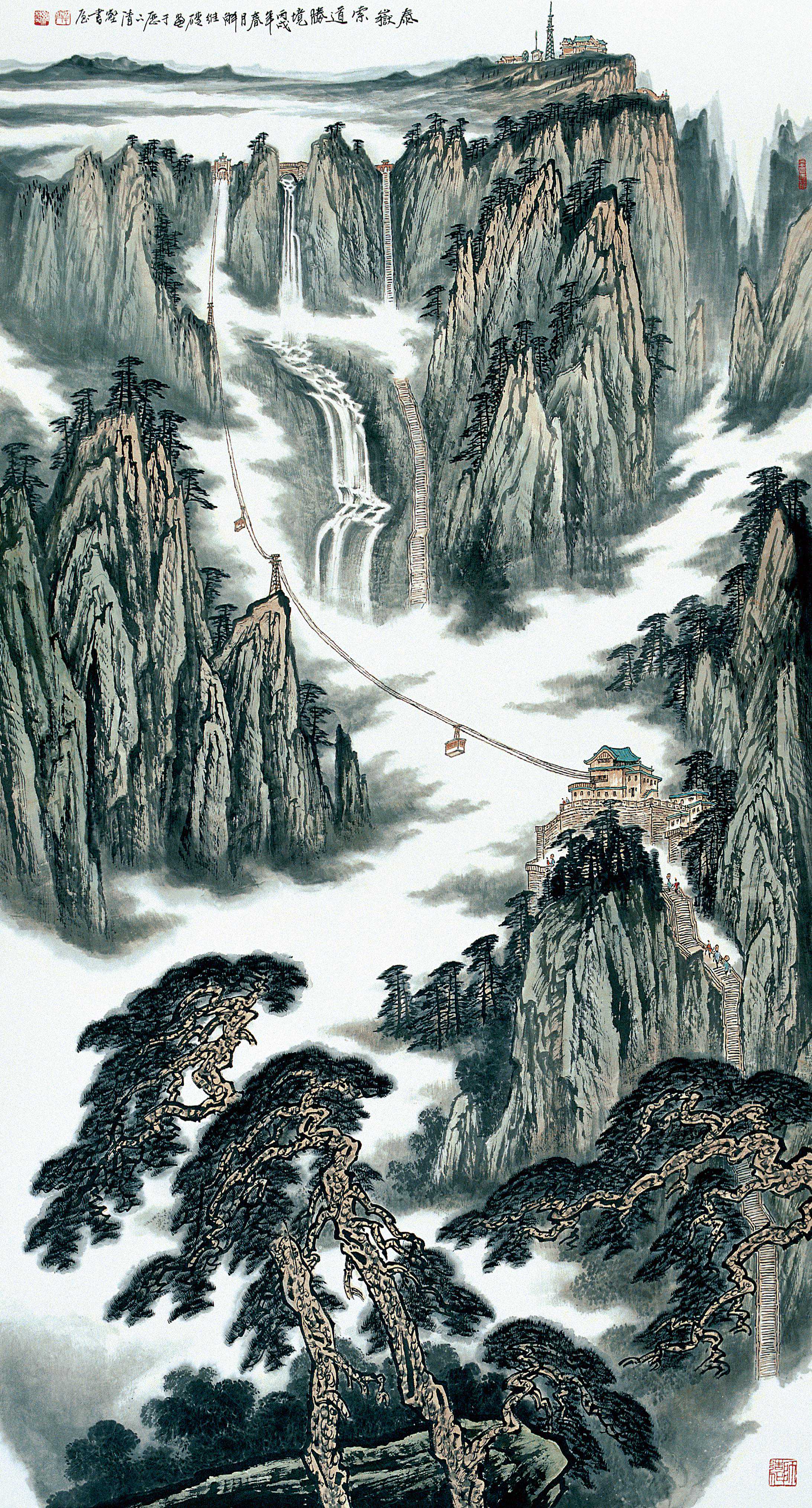 解维础,1946年生,山东牟平人,中国美术协会会员。师承关友声、黑伯龙等众多艺术家。曾任山东工艺美术学院美术系国画教研室主任、教授。济南市政协委员。山东大学东方艺术研究院客座教授、山东书画学会学术委员、山东当代书画研究院副院长、山东画院高级画师等。1973年,国画作品海河组画之一《绿化》入选全国美展。1983年,国画作品《王安石诗意-水护田将绿绕》在中国画研究院选题画竞赛中入选。1990年,创作巨幅国画《泰岳松云》(5.5米)在北京国际会议中心第八会议厅陈列。1991年,创作国画《沂蒙春晓》(4米)在人民大会堂山东厅陈列。1992年,应邀赴中国香港地区、日本举办画展。1993年,创作国画《大明湖胜境》在天安门城楼陈列。1995年,创作巨幅国画《雄峙天东》(12x4米)在中南海西花厅周恩来总理故居陈列。1997年,创作国画《趵突泉胜境》(2米)在济南国际机场贵宾厅陈列。2000年,应邀赴韩国举办画展。国画作品《泰岳南天门》入选中国当代美术画集。2001年,创作国画《趵突春色》(2.2米)在山东会堂贵宾厅陈列。2008年,创作巨幅国画《大明湖胜境图》(5米)在山东省人大常委会议厅陈列。2012年,创作巨幅国画《大明湖胜境图》(6米)在山东大厦齐鲁厅陈列。2012年,创作巨幅国画《迎薰海晏漾春风》(3.6米)在中南海陈列。2014年,创作巨幅国画《日出东方耀中华》(6.6x3米)、《雄峙天都》(2.48米)在中南海陈列。主要著作有:《黄河》(国画集)、《海河新图》(国画集)、《泰山松》(国画集)、《解维础山水画选集》《树石山泉画法》(技法专著)、《中国当代艺术家画库-解维础画集》《怎样画树石山泉》《解维础国画集》等。