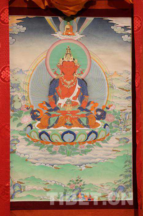 图为噶玛噶赤画派唐卡作品《无量寿佛》,作者噶玛德勒。