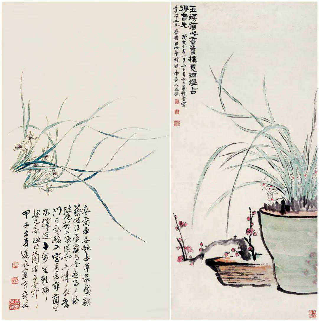 姚茫父写“双钩兰花”铜盒拓本与同时期绘画