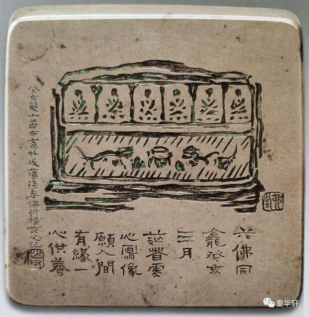 姚茫父写六佛同龛铜盒