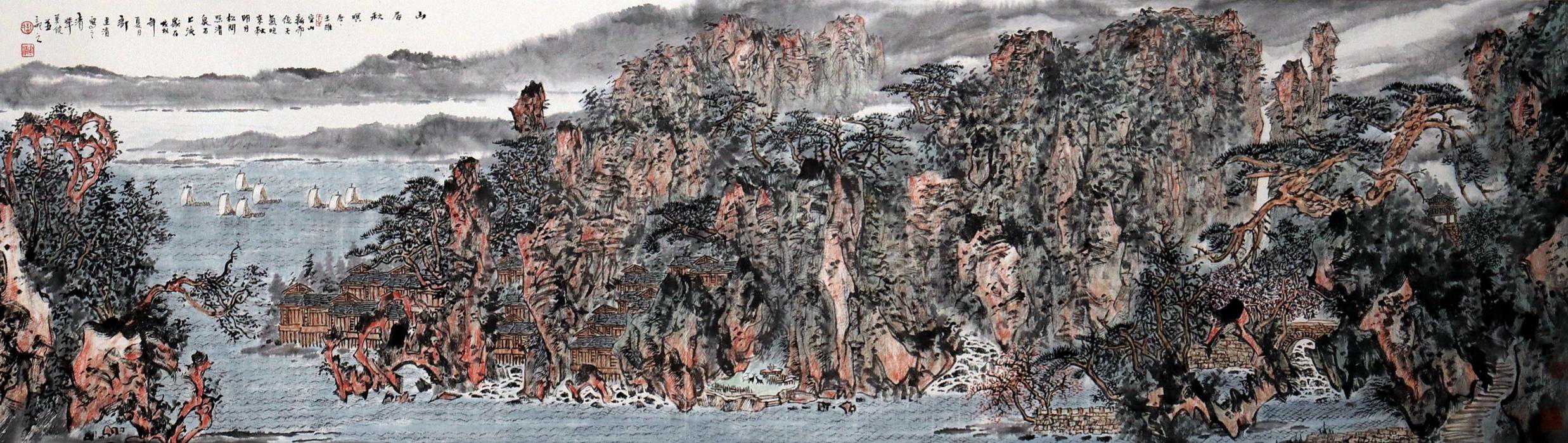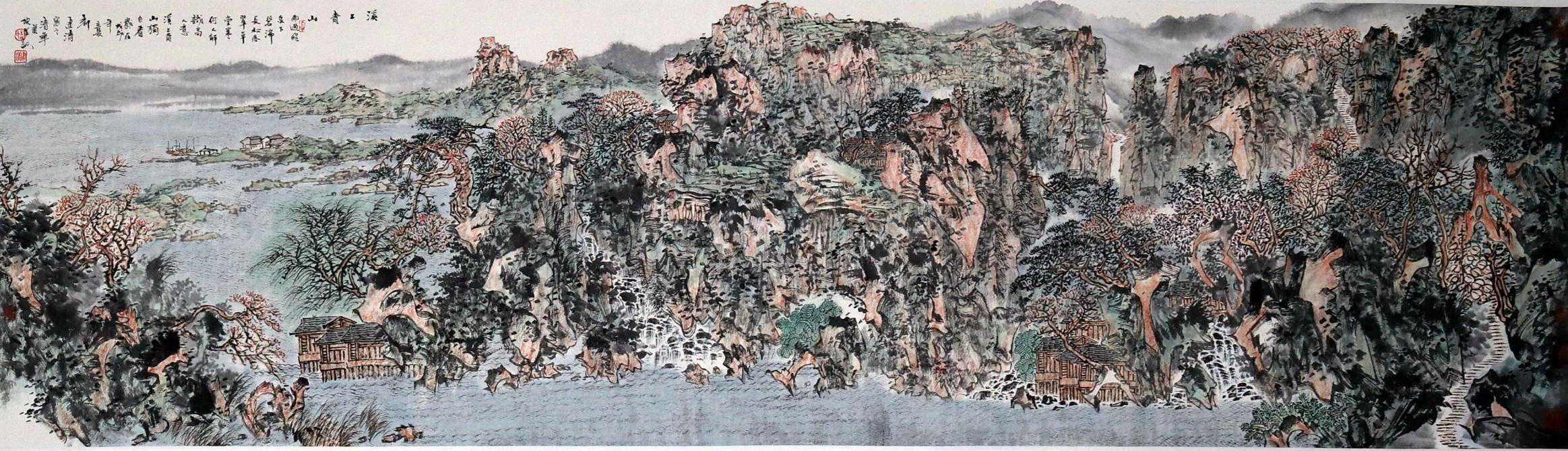 计建清积极投身这种山水画创新中并在几方面题材的创作中取得了突破,其中建青灵活得运用现实主义表现手法大胆创新、强化写生,这是他在传统中国绘画中的突破之处。中国画尚大、尚化、尚神、尚气,以此衡之,无论神韵气象,无论形象笔墨,计建清之作都滔乎大方,技进乎道,也就是期于大化之境。