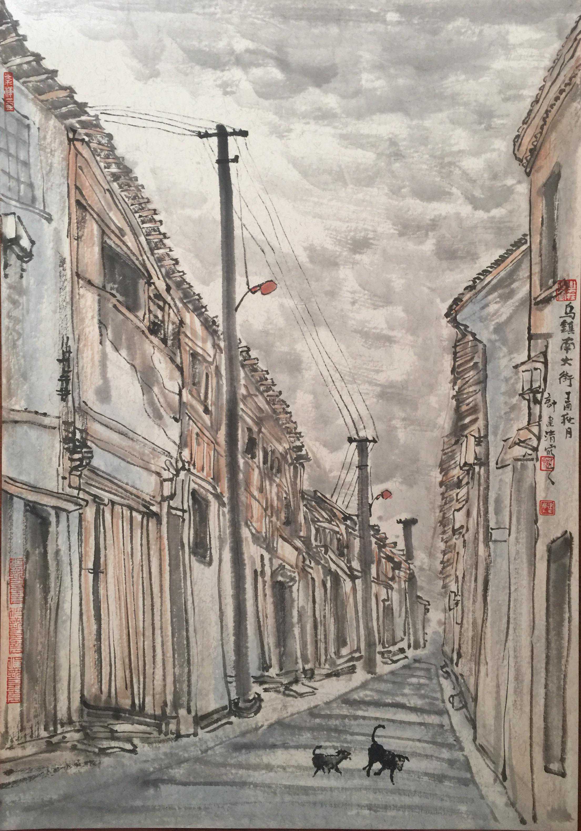 计建清是一个出生在江南的画家,历史上,江浙这方水土孕育了很多文人达贤,有着深厚的文化积淀。这里既有天下闻名的富春江,又有风格各异、古朴自然的乌镇,是山水画家得天独厚的福地。建青就是从这块文化厚土,山水之城的土地上成长起来的画家。在他的作品里敢于突破传统,既描绘江南温润委婉的小桥流水又崇尚中国西北大漠的浑厚博大。