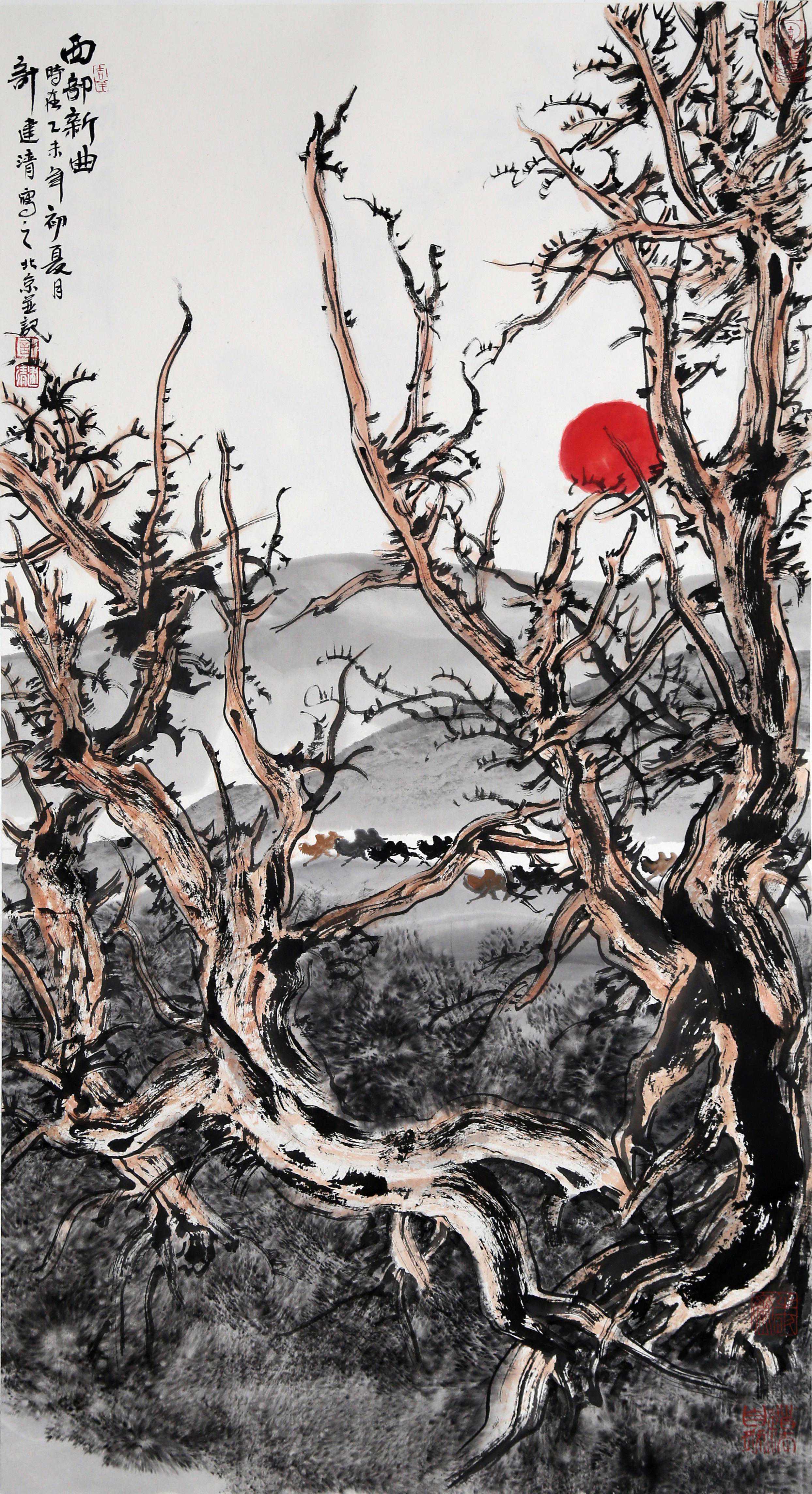 九十年代后,进修于中国美术学院国画系,师从王伯敏,孔仲起,曹文驰,等名家,成为曹文驰入室弟子,在此期间他师承授受,学有所本。在充分研究传统绘画的同时力求突破。生在江南这片毓秀水乡的计建清把眼光放在了广博苍茫的西部大川之上,他数次身背行囊游历于黄河故道,丝绸之路,大漠夕阳……在其作品中,创作实现了“外师造化、中得心源”,建青由对自然山水的观察、体验、感悟上升到主观的认识、提炼,通过技巧表达出自我的胸臆和情感。