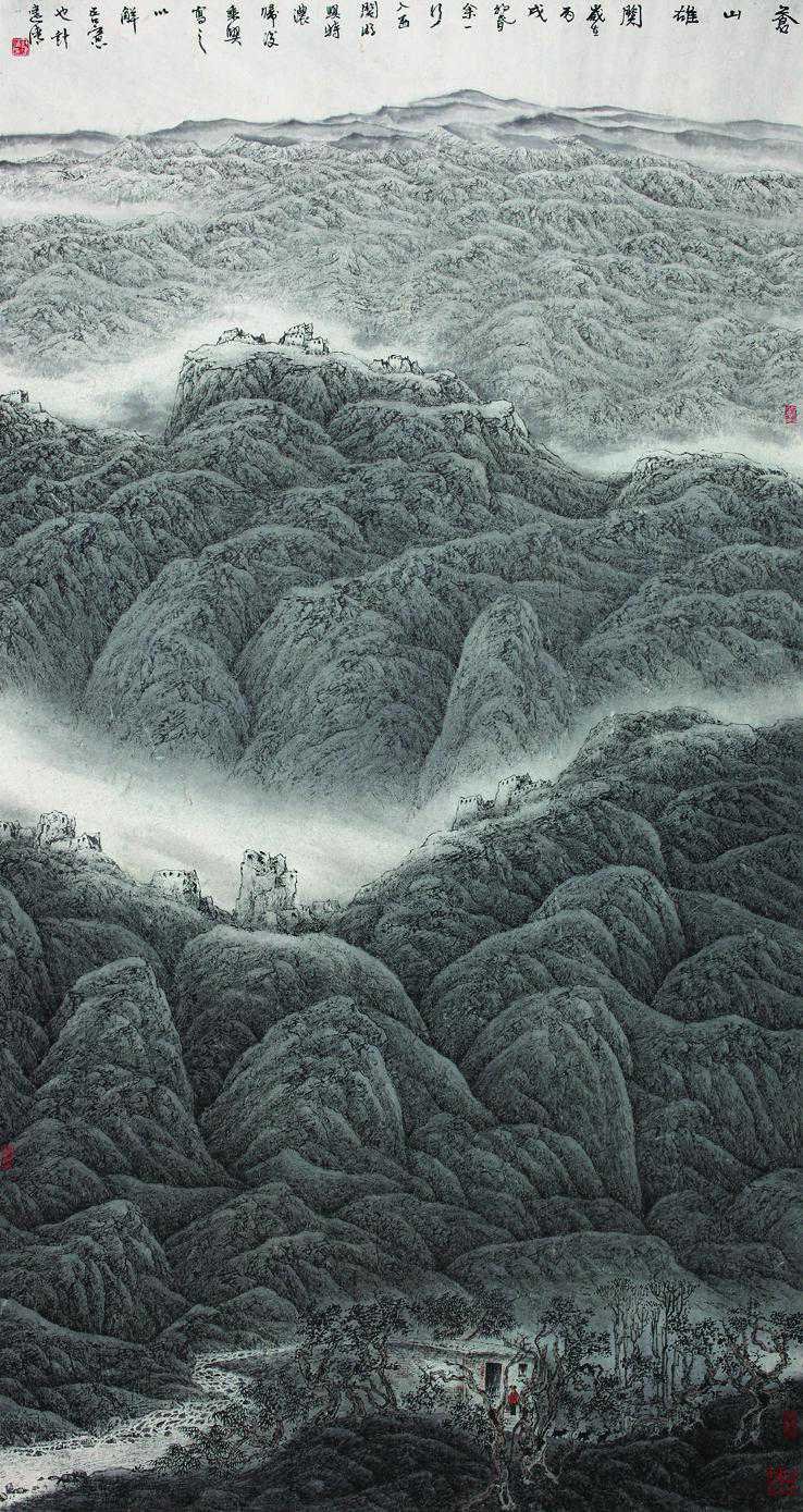 所以说计建清是在对古典笔墨的追寻和发展中逼近了现代,并在对山川自然的内在结构中建立起现代笔墨的“开合”空间秩序。[明]莫是龙说:“传神者必以形,形与心手相凑而相忘,神之所托也。”这正是计建清以笔墨的“内美静中参”让笔墨精神再度有了新的阐释。他在坚持笔墨精神的“浑厚华滋”中将现代中国山水画精神,发展成为了一种现代民族精神。计建清为中国画笔墨语言增添了发展的新的思路。