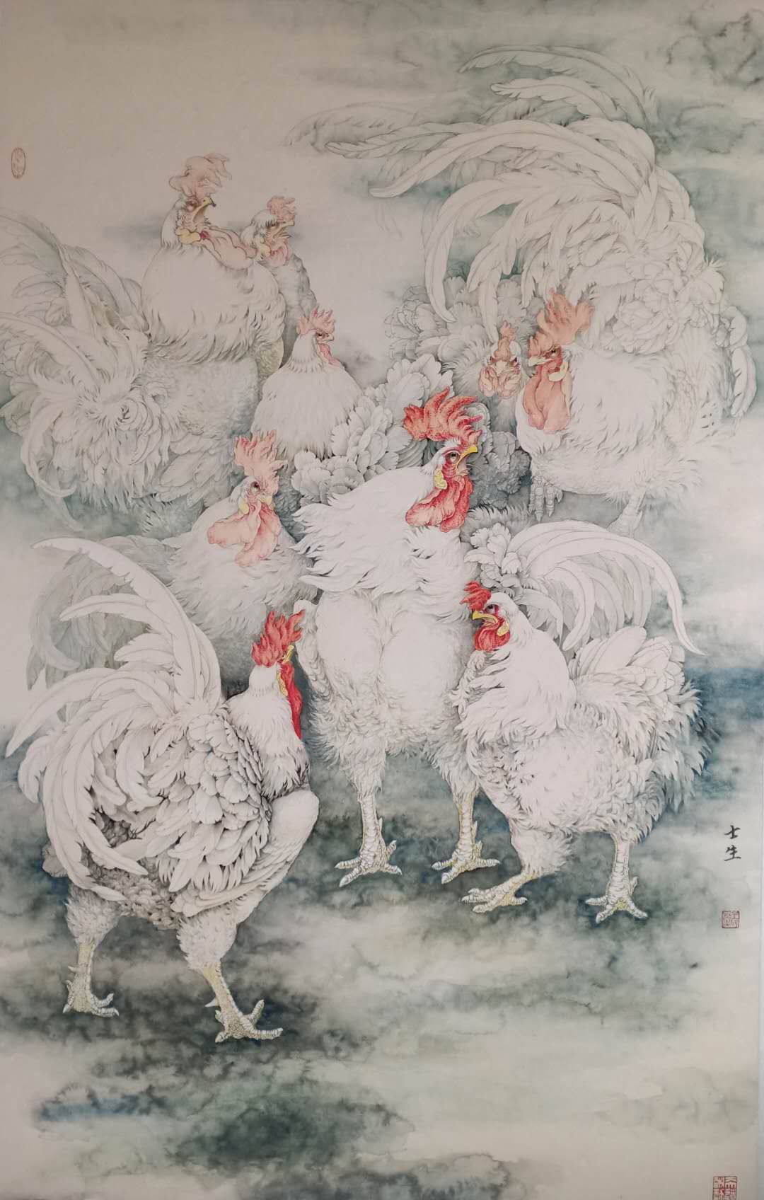 “历经一番寒彻骨,终得梅花扑鼻香”,迎来了收获的喜报。《雪翅》、《乡间三月迎客来》等十几件作品分获文化部、中美协展览奖项,《田园晨曲》、《惠风和畅》、《教子图》等一批国画精品也在摘金夺银后相继被国内外艺术性书籍收录并在国外出版发行。《欢乐锣鼓》、《名声高远》成为举世瞩目的上海世博会开幕首展作品。