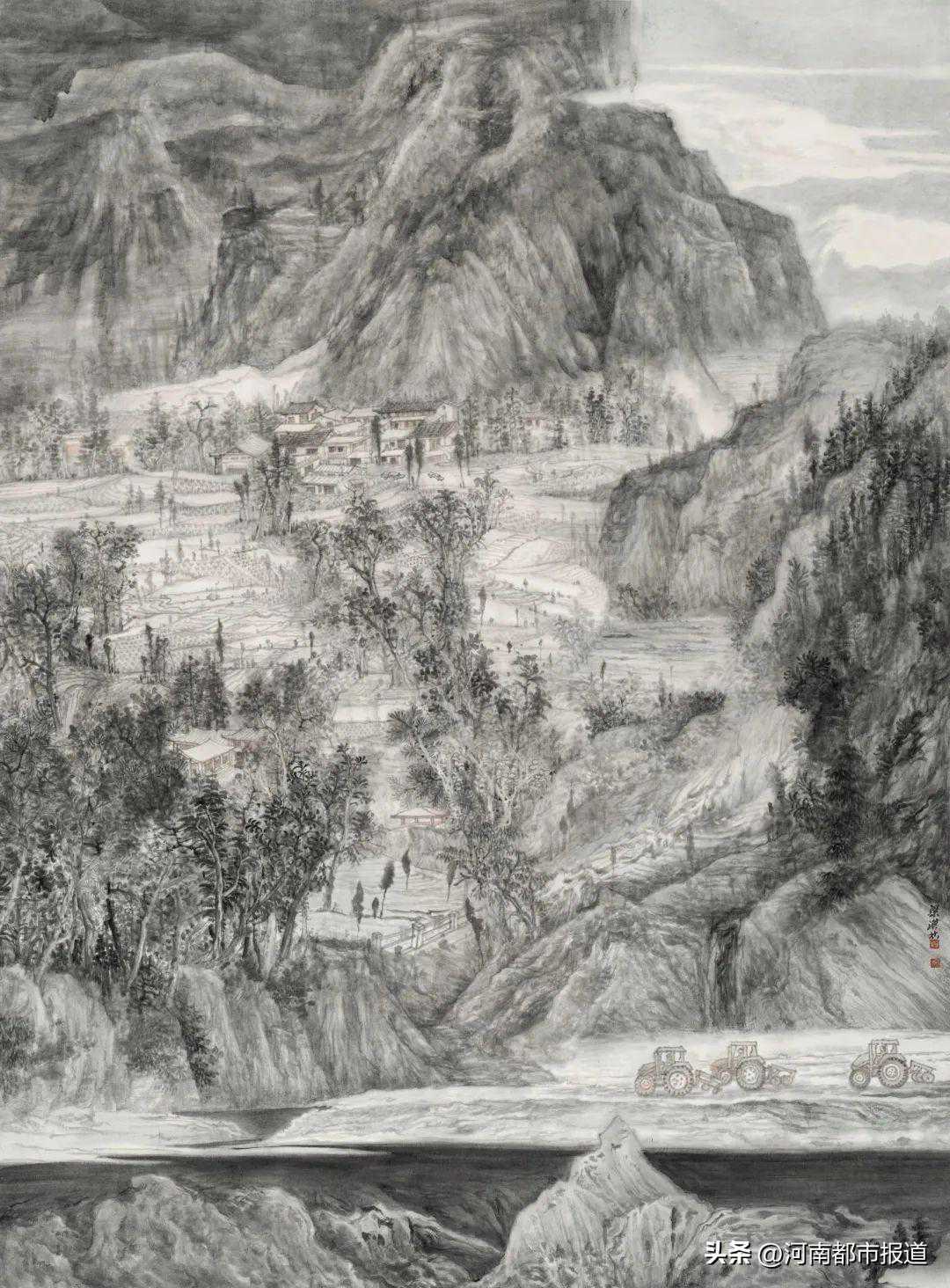 不俗的成绩离不开夯实的工作。据了解,近年来,河南省强力推进“文化强省”建设,河南美术界持续以展览和活动为抓手,促进精品创作、打造美术品牌。坚持“走出去”,2019年取得第十三届全国美展“壁画展区”承办权,实现了申办“国展”零的突破。2020年在中国美术馆成功举办“中原风·黄河魂——河南省优秀美术作品展”。从2016年至今,先后在国内19个省区成功举办“中原画风·河南省优秀美术作品巡展”,打造“中原画风”品牌;积极实施“请进来”,引进全国大型美展在郑州举办,先后承办了五届全国中国画线描艺术展、第七届全国画院美术作品展览等。中国国家画院美术馆馆长方土近年来多次来到河南写生创作、参加展览活动,他表示,近几年观察下来,河南美术事业发展变化特别大,美术创作力量不断增长,美术馆的硬件建设也跟上来了,举办的活动密度比较大,这充分体现了当地对文化和美术的重视。