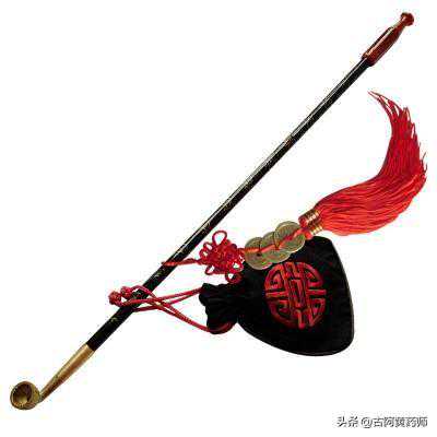 所谓的烟袋锅其实就是人们抽旱烟的工具,它由烟锅、烟杆和烟嘴三部分组成。烟锅多是铜制的或铸铁制造的,烟杆一般是用空心的竹子制作的。有长有短,长的很长,几乎和抽烟人的手臂一样长;短的也很短,不过一拃多长。在烟袋锅三件套中,最为讲究的是烟嘴。有象牙的,有玛瑙的,还有玉石的。烟嘴的贵贱,多少反映着抽烟人的身份。当年由于抽旱烟的人较多,几乎每个生产队每年都留有土地种植烟草。烟草成熟时大约有半人多高,烟叶像芭蕉叶子一样硕大。乡亲们将队里分得的烟叶在阳光下晒干或用火烘干后,揉成细末备用。抽烟人将烟末装在旱烟袋中,这小小的烟袋,上小下大,上边用线绳穿起拴挂在烟杆上。一拉绳口收紧以防止烟叶外漏,一撑绳口张开,方便主人伸进烟锅装烟。小小的烟袋,个个都是艺术品,有的绣着花卉,有的绣着鸳鸯戏水等,还有绣动物或人物等,形象生动,栩栩如生。