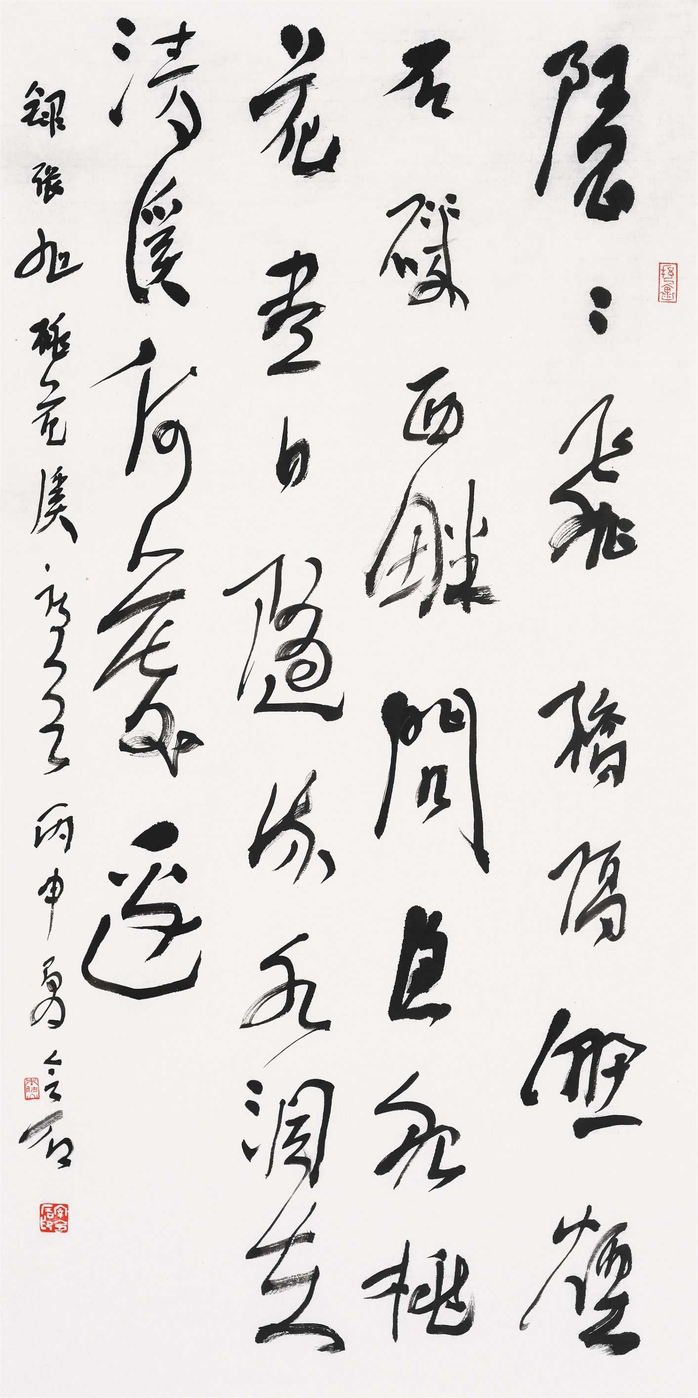 从心,就能回归本性,落在笔意之上,也就自然。草书而不夸张、不矫饰,在理论上由来已久,苏轼曾尽情贬抑张旭、怀素:“颠张醉素两秃翁,追逐世好称书工。何曾梦见王与钟,妄自粉饰欺盲聋。有如市倡抹青红,妖歌嫚舞眩儿童。”若能不迎合时尚,若能不刻意求工求好,必是在逐渐“老”的历练中,经受人生辗转的洗尽铅华。当是放下矫揉造作,摒弃经营和雕琢,略过博人悦赏的虚浮,是能够将“心性”贴近点画线条的纯任自然。