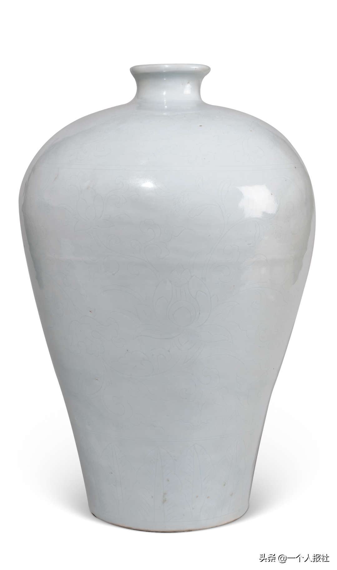 明永乐甜白釉暗刻缠枝牡丹纹梅瓶