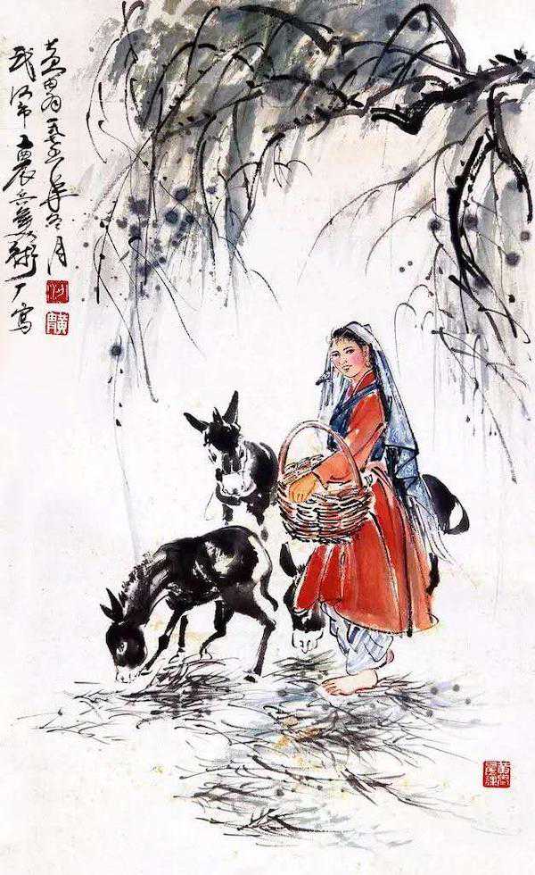 在外交部招待所没待过一年,就遇上了批邓小平的回头路。中国美术馆做了一个黑画展,其中就有我父亲的作品。我父亲画的是我给他讲的在干校放牛的故事。当时我去的干校位于河南信阳,那里有很多水牛。父亲画了水牛在水里玩,描绘了一个小孩戴着红领巾,天上还有鸟。别人批评他,说他讽刺中国人民生活在水深火热之中,画面中小孩看鸟朝西边飞,暗示向往西方。我记得李苦禅画了8朵荷花,别人就说他是污蔑8个样板戏。后来李苦禅说,“我都背不出8个样板戏有什么。”黄永玉画的是一只睁一只眼闭一只眼的猫头鹰,李可染的山水被批为黑山黑水。“文革”时期,我父亲画了一张《赶集图》中,描绘一位美丽的姑娘,骑着毛驴,手中抱着孩子。后面有一个维吾尔族大爷背着地毯去自由市场上去卖。这张画被批为要走回头路。