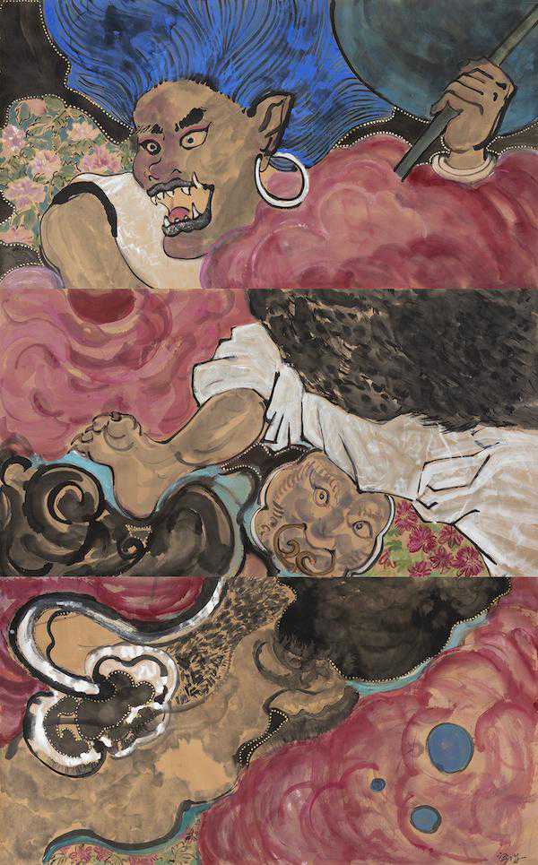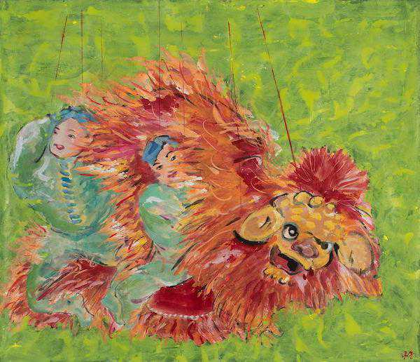 梁缨,《金毛狮,一张皮》,纸本设色,2019