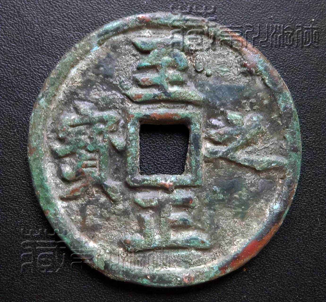 次观铸相。辗转本品,可见其铸制规整有加,其直径约为50.88毫米,重约44.17克,铸体足料而显厚实,类当五十型钱形制大小。其铸相制式显示,窄缘窄穿廓,铸体方正圆矩,坦平地章(锈痂较深重附着而略显不平),穿轮则是干干净净。续观其字廓,深竣挺拔,面文笔划清晰有加,鼓凸自然有度,恰到好处。背文笔划则有所粘连(加之锈痂裹缚更显粘连不清),而这恰好是该钱的一个普遍性铸相特征。至此,观铸识体,无需再表,本品整体铸相自然而有十分规整,乃为顺帝官炉所出之本色铸相,其门再开,无话可说。