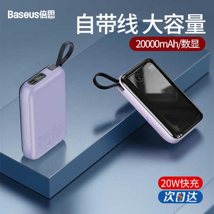 倍思充电宝20000毫安自带线