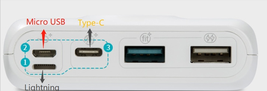 比如下面这个充电宝,它同时支持三种输入,也就是说,不管你用的是哪款手机,只需要一条原装线,既能给手机充电又能给充电宝充电。