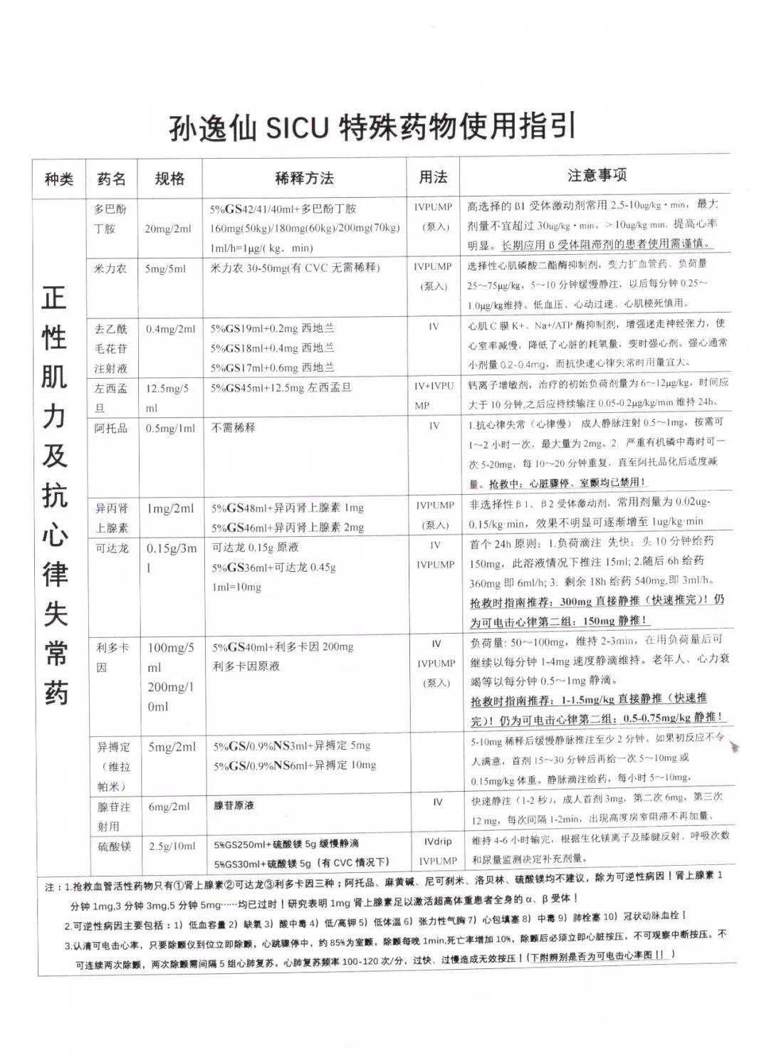特殊药品配伍及使用指引↓↓↓