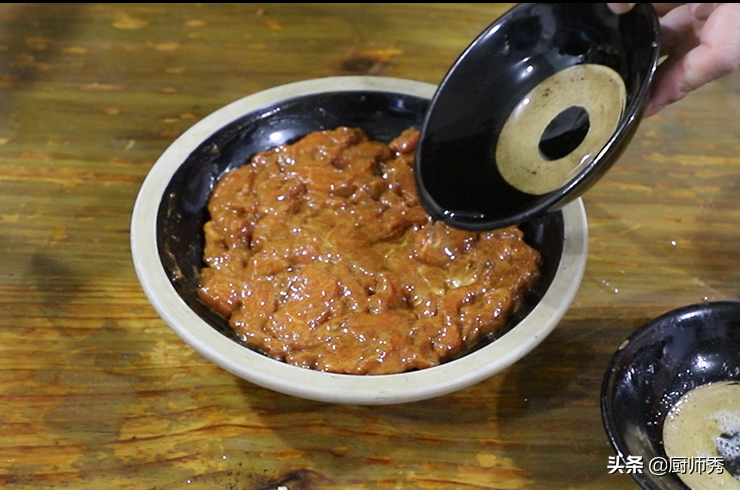 6、上面再倒上干净的植物油封口,加植物油是防止氧化出水,把浆好的牛肉放冰箱冷藏保存即可,我们在浆肉的时候可以一次多做一点,春节所用随取,下面开始上火制作。