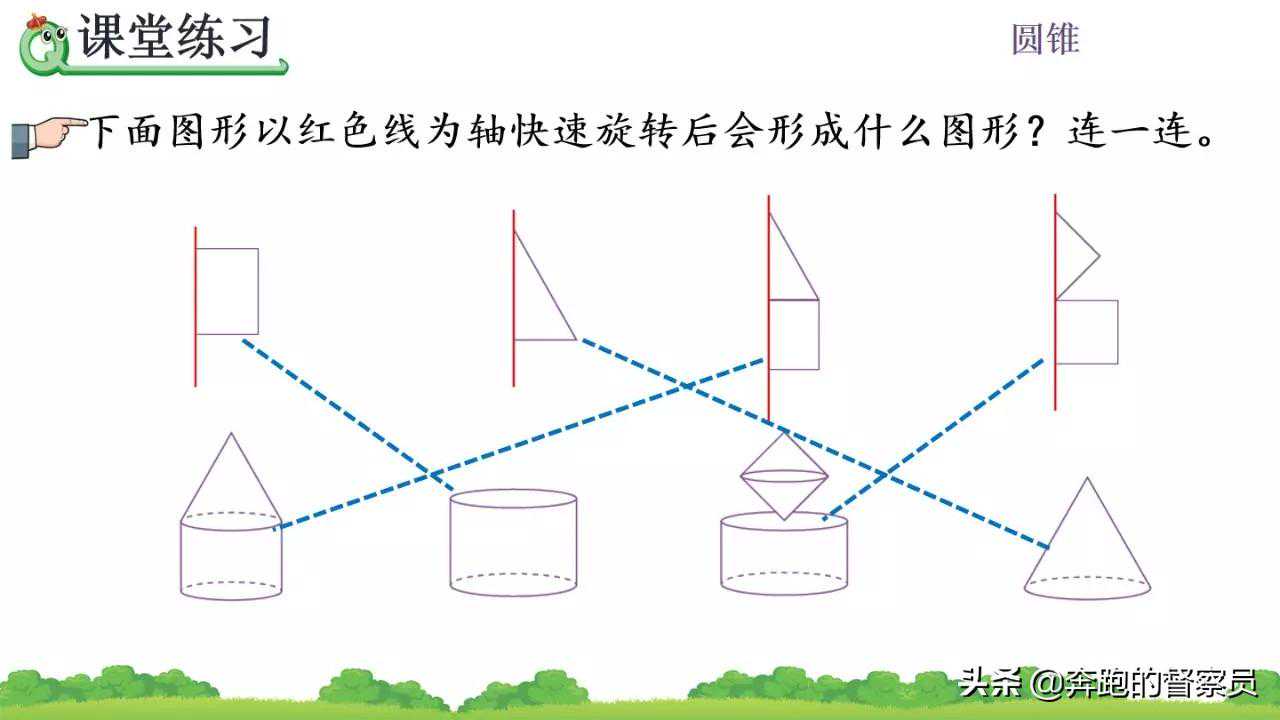 在学习时,同学们可以通过实际的例子和实验的操作来进一步地证实其旋转过程中的特点,从而掌握圆柱和圆锥。有平面图形转化的特点。这不仅能培养大家实际操作的能力,而且从观察当中。提升自己的数学空间思维。