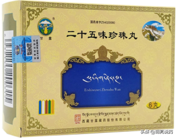藏药方解:方中珍珠、牛黄、麝香、石灰华开窍醒神,息风止痉;丁香、草果、肉豆蔻温中散寒;红花活血化瘀。诸药共奏安神开窍之功。由于创造性地把活血化瘀、疏经活络、通窍醒脑相结合,所以二十五味珍珠丸在治疗中风、偏瘫等疑难疾病方面取得突破性的进展,为无数患者减轻了病痛。