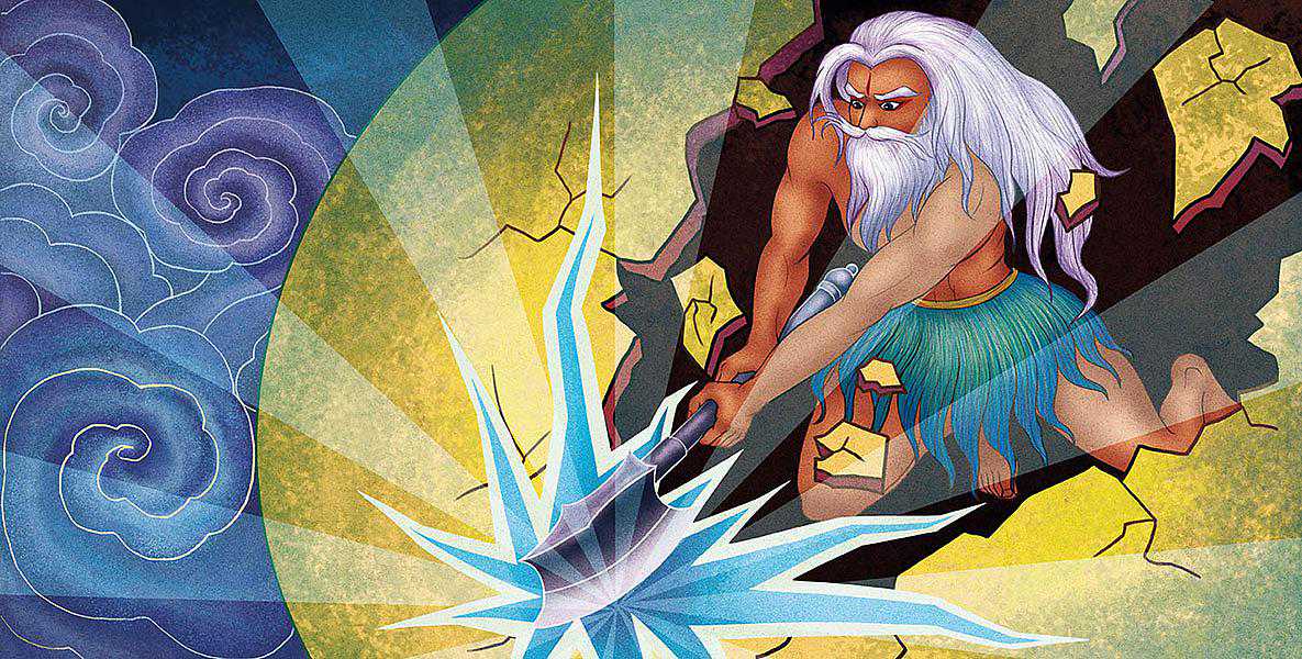 “开天辟地”,实质上应该是“辟地开天”。我们可以想象一下远古混沌未开的世界是啥样子,那一定是一片植被茂密的原始森林,树木遮天蔽日,山峦起伏,河流纵横,猛兽横行,大地布满厚厚的枯枝败叶,茂密的森林遮住了太阳。