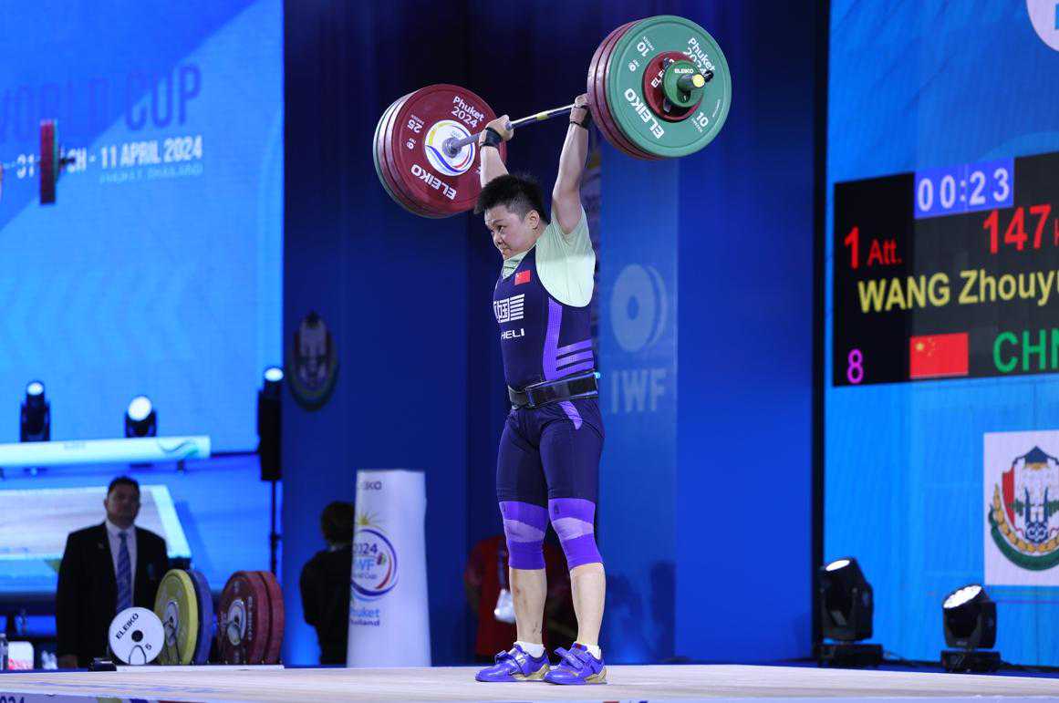 2024年国际举联泰国世界杯赛4月9日进行了女子奥运级别81公斤级争夺,中国选手汪周雨收获三枚银牌。