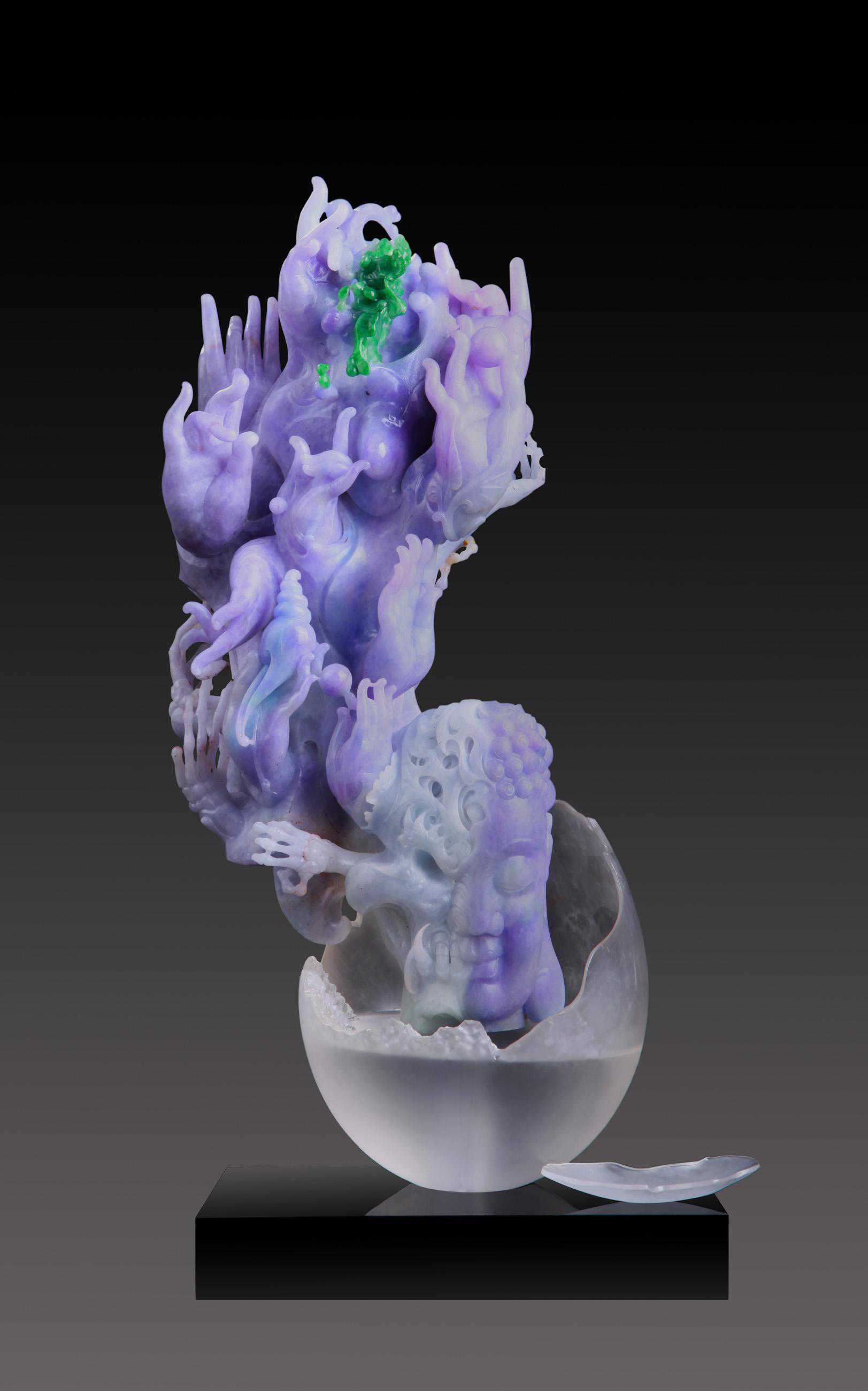 翡翠是由以硬玉为主的无数细小纤维状矿物微晶纵横交织而形成的致密块状集合体。对于自然界翡翠的形成,主要有四种主要观点: