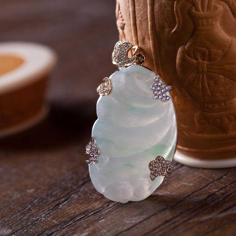 在漫长的岁月中,我们的祖先创造了许多对美好生活向往和追求寓意吉祥的图案。这些吉祥图案融合了劳动人民的欣赏习惯,反映了人们善良健康的思想感情,因而在社会上广泛流传,为人们所喜闻乐见。吉祥图案广泛应用于历代翡翠上。“穿金显富贵、戴玉保平安”,翡翠上雕刻的吉祥图案生动逼真,多种多样,素材包括人物、器物、动物、植物等,表现内容有祈求福寿吉祥、平安如意、多子多孙、升官发财、玉是中国人手中的宝,更是心中的魂。金银有价玉渡有缘。翡翠雕刻的品类包括玉佛、如意、平安扣、竹节、长命锁、福豆、貔貅等等。寓意丰富,如百年好合、龙凤呈祥、福寿双全、状元及第、连升三级、吉祥如意。