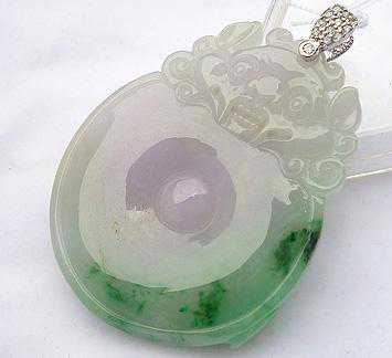 翡翠呈现玻璃光泽,半透明或透明。翡翠因含有不同的染色离子而呈现各种颜色:通常有白、红、绿、紫。黄、粉等。纯净无杂质者为白色,若含有铬元素,则呈现出柔润艳丽的淡绿、深绿色,名之为翠。此品种最为名贵,极受人们的珍视喜爱。若含锰则呈现淡紫色、深紫色,常称为春地或藕粉地。含铁元素,则呈现暗红、褐红、赭红色,被人们称为翡。含铬和铜元素,则呈现淡蓝、淡青色,人称橄榄水。高档翡翠除颜色好之外,质地也极其重要。一般颜色鲜嫩漂亮,质地较透明,玻璃光泽强者为上品。相反,质地发干,透明度较差的品种次之。