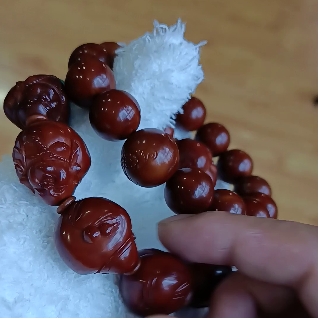 所以,无论是盘玩核桃、金刚还是有纹路的手串,都要轻柔盘玩,以免刮伤表面。对于表面光滑的手串,可以用力揉搓,以增加表面的光泽度和红度。使用万毛手套可以带来更好的效果。