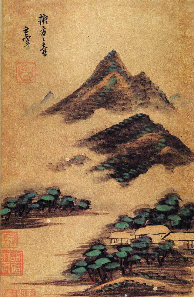 此《董其昌书画合册》,为周培源先生旧藏,册页共十二帧(25.6×16厘米)绢本,画上钤朱文“昌”,书法钤白文“宗伯学士”、白文“董氏玄宰”。其余为收藏章。文物出版社《中国古代书画图目》未收。