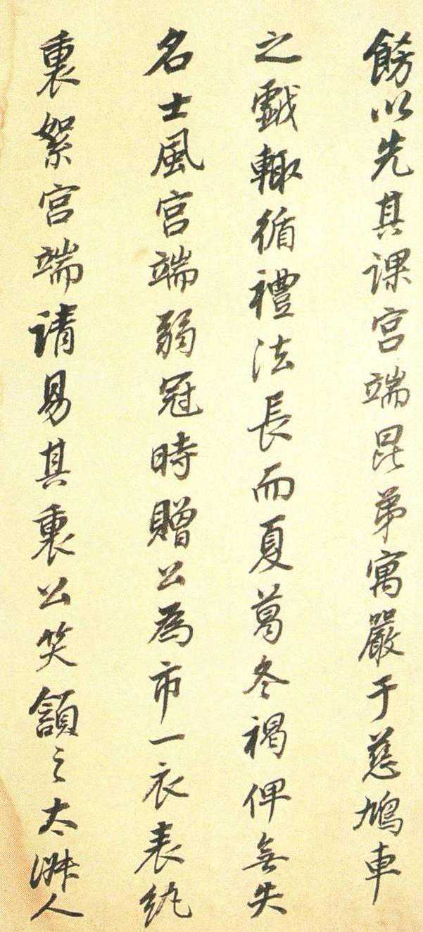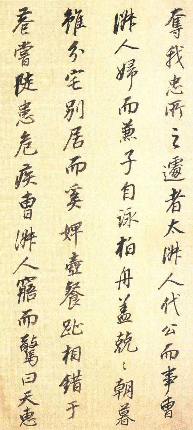 书法的章法都极具董氏特色,每帧三行,行距拉得特别开,留下很多空白,显得疏朗清旷,萧散简远。用墨也极有个性,表面上看起来十分随意,墨之浓淡枯润一任自然,但呈现出来的却是一派淡墨渴笔的风韵