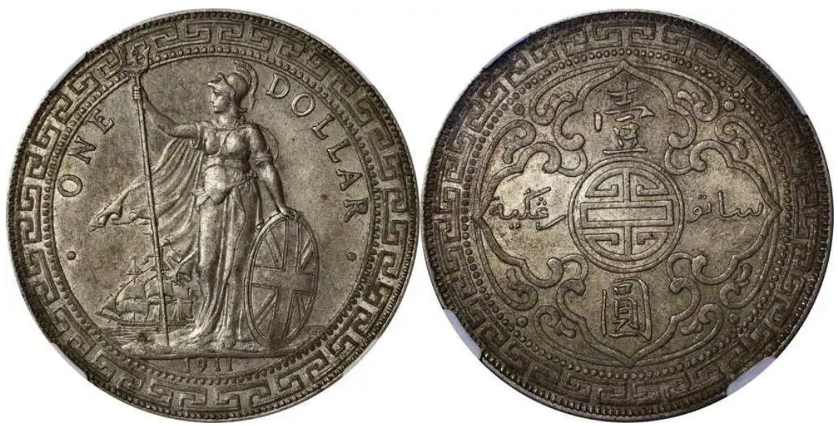 站洋,又称“站人”,是指19世纪末至20世纪初英国铸造并广泛流通于亚洲的一种银元。其历史可以追溯到16世纪,当时英国在印度和东南亚地区建立了殖民地,为了方便贸易和巩固统治,英国开始在这些地区铸造和使用银元。站洋便是其中的一种,其设计风格独特,正面为不列颠女神站像,背面则铸有汉字和英文。