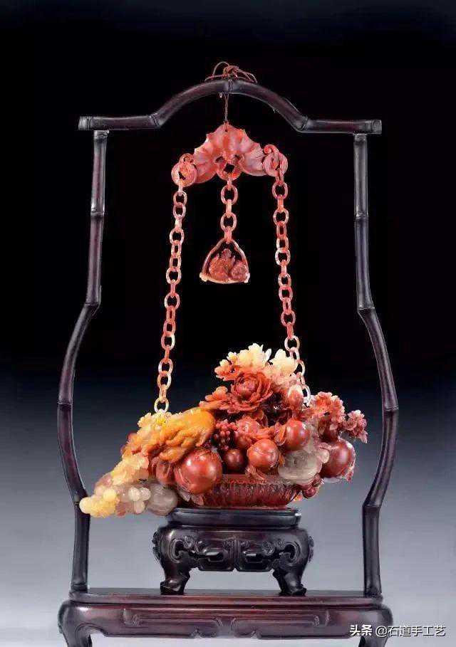 链雕是用一块石材镂空雕刻出一整条活动石链的雕法。该法源于玉雕,却比玉雕更难,因为石质不比玉质坚韧,稍有不慎就会造成链断石毁。