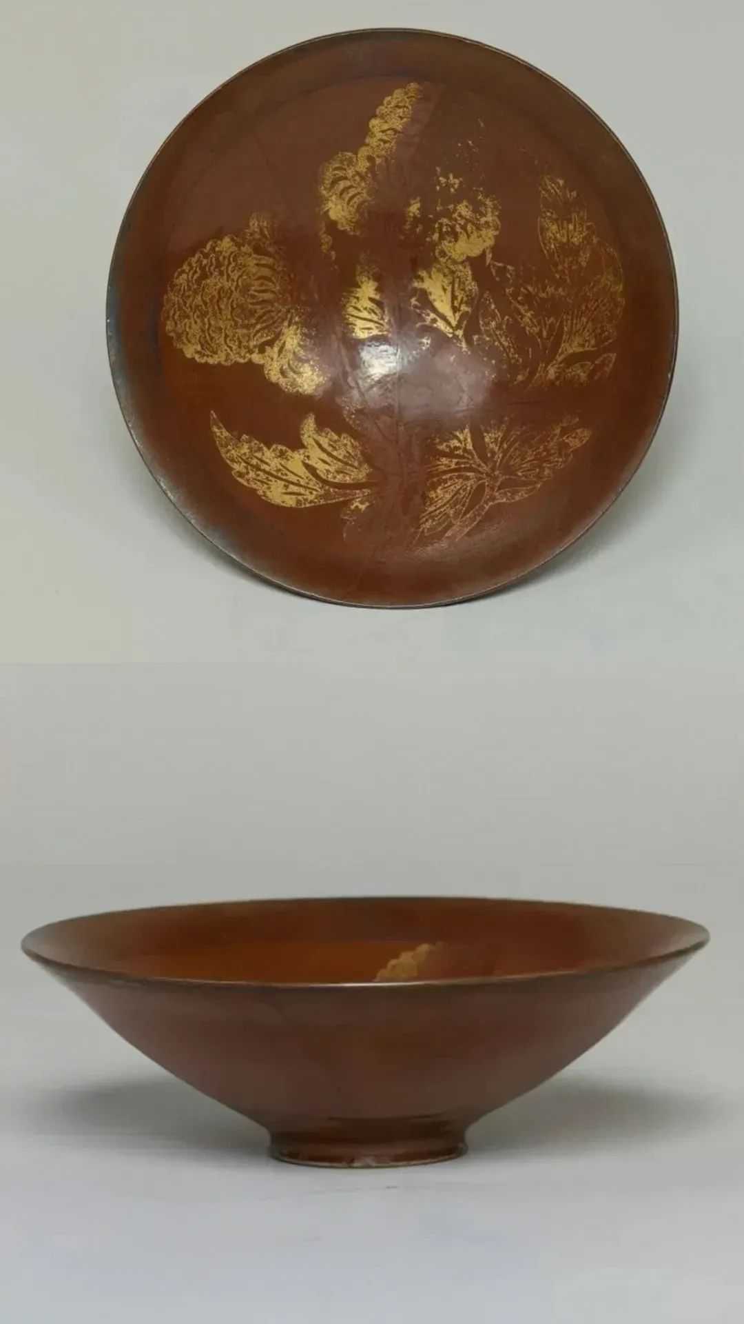 北宋定窑柿釉金银彩牡丹纹碗日本东京国立博物馆藏