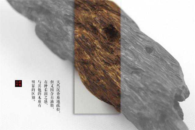 天然沉香的质地是疏松的,总体而言是没什么压手的重量,但又因含有油脂,有种柔润之感,与其他的木质有明显的区别。但要注意的是,如果沉香上手有滞涩感,就要留意观察其油脂分布状况。表面有大量油脂的话,要看是否有浸泡注油的情况,或者抛光过度油脂外溢的情况。这些都不是正常的油脂表象。