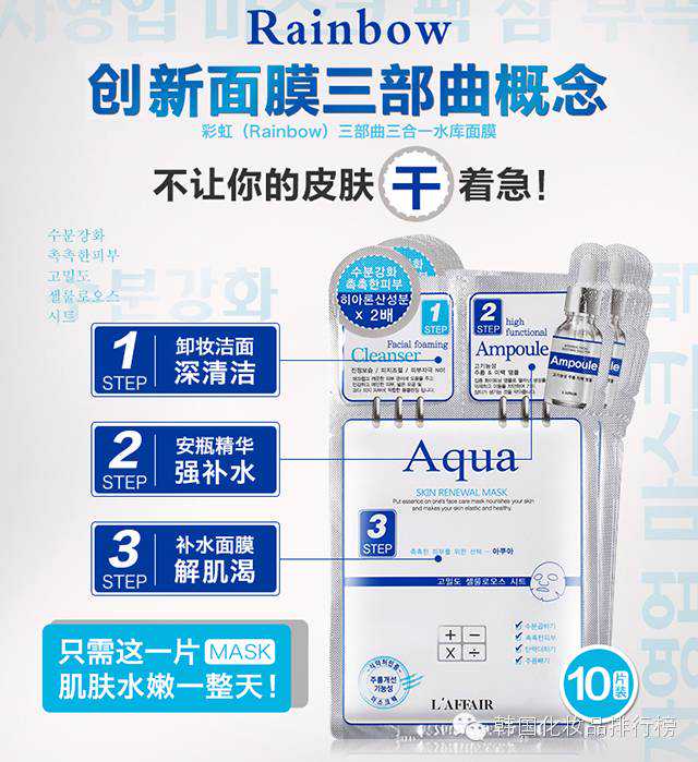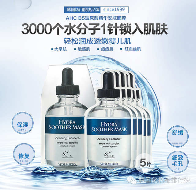 近期去韩国采购,明洞免税店一夜之间各大显眼的地方全部都是AHC的产品,一盒面膜5片卖到45000韩币,相当于人民币270左右,抢购的人却每天都长龙不断,后来了解到这是个99年的院线老品牌,韩国前总统夫人一直在使用。废话不多说,讲讲效果。用完之后皮肤像加了特技,Duang的,很Q弹,重要的是还会持续好几天,补水效果以一弟十,效果绝对配的上他的高价!