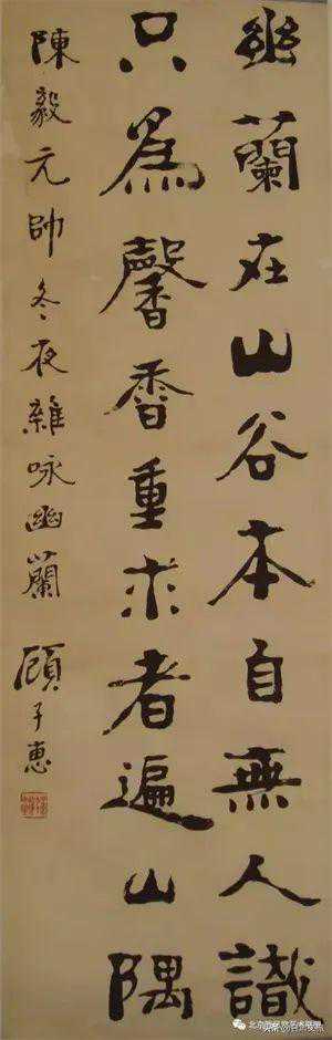顾子惠(1904.11.16一2005.5.24),江苏太仓人,幼年随父移京居都,秉承家训,勤读诗书,耽嗜书法,临碑习贴,如啖蔗饴,时得真传。青年时期步入画坛,三十年代初,北京淳菁阁深得王寿祺、陈师曾、李鼎遗等大家点拨,颇悟真谛。先生早年从事土木工程事业,足迹遍步云贵川及中缅地区,祖国秀美山川,陶冶了先生的艺术情操,与各地书界名流切磋琢磨,开阔了先生的艺术视野。四十年代西赴金城,与陇上书法大师魏振皆先生互研书艺,书日进,名日彰。顾老于古稀之年,揣摩多年理论研究与实践探索之心得,刻意创新,独辟蹊径。融篆隶于一炉,其作品源于篆而非篆、出于隶而别于隶、亦篆亦隶之独特书风,独具一格,独树一帜,自成一家。更称奇者,为先生之书、画、印三艺俱佳,春兰秋菊,相得益彰。其古朴隽逸,淳厚雄美,鲜有出有右者。文以载道,艺以明德,顾老从事书法艺术大半世纪,以其德高艺精,人书俱老,被誉为“陇上书坛泰斗”。其艺术造诣,已远远超越地域界限,影响所及,遍布海内外。其作品曾多次参加国内、国际重大展事,常见诸多种专业报刊杂志,并被多家博物馆、纪念馆及名胜古地收藏珍存,或勒石刻碑。先生本人生平简介及作品已入编《中国当代书法家辞典》《中国现代书法界名人辞典》。