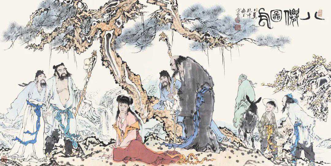 揉诗入画,画中有诗,是范曾表现历史人物题材又一美学思想。范曾认为:“这意境是画家的心境,是画家用自己的情怀感染别人,是画家笔下所创造的世界,它是一种精神世界。画家的心境越大,就愈能感染别人。”因此范曾作品追求诗的意境,让人看他的画如同读一首诗、品一阙词。