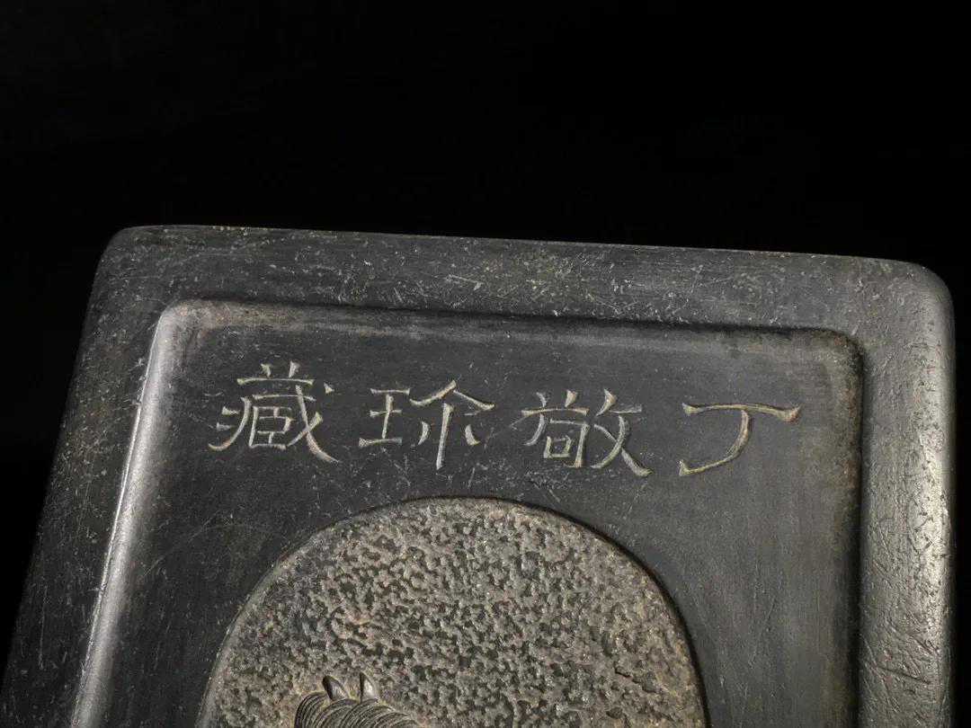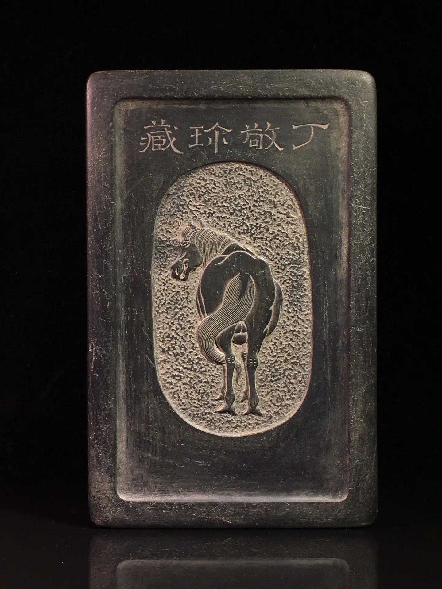 清代名家“丁敬”老坑金眉歙砚千里之驹,石料上乘,端方厚实,质地坚密细腻,哈气生雾,发墨益毫,砚面门形素池典雅大方,线条挺拨,天然纹理波澜壮观,石品珍贵,砚背纹饰精美,刀工犀利,款:丁敬,包浆浑厚,收藏赏用珍品。