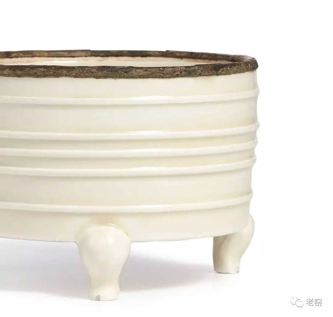 北宋定窑白釉扣口弦纹三足炉