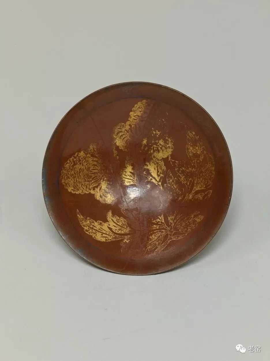 北宋定窑柿釉金银彩牡丹文碗