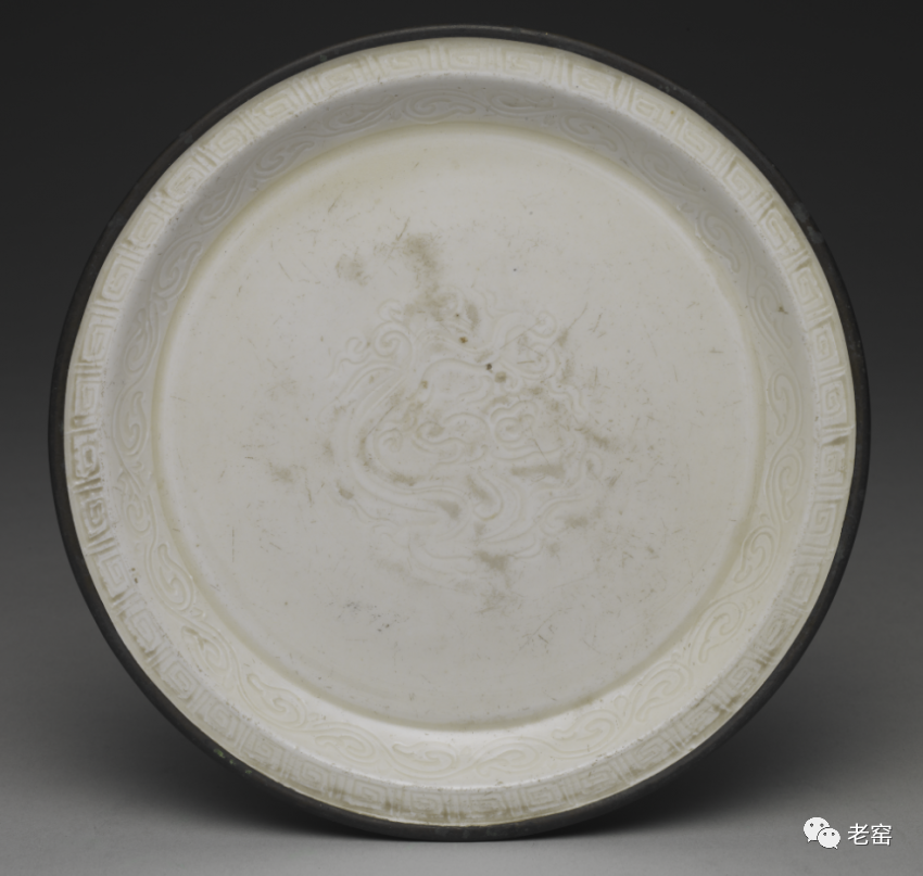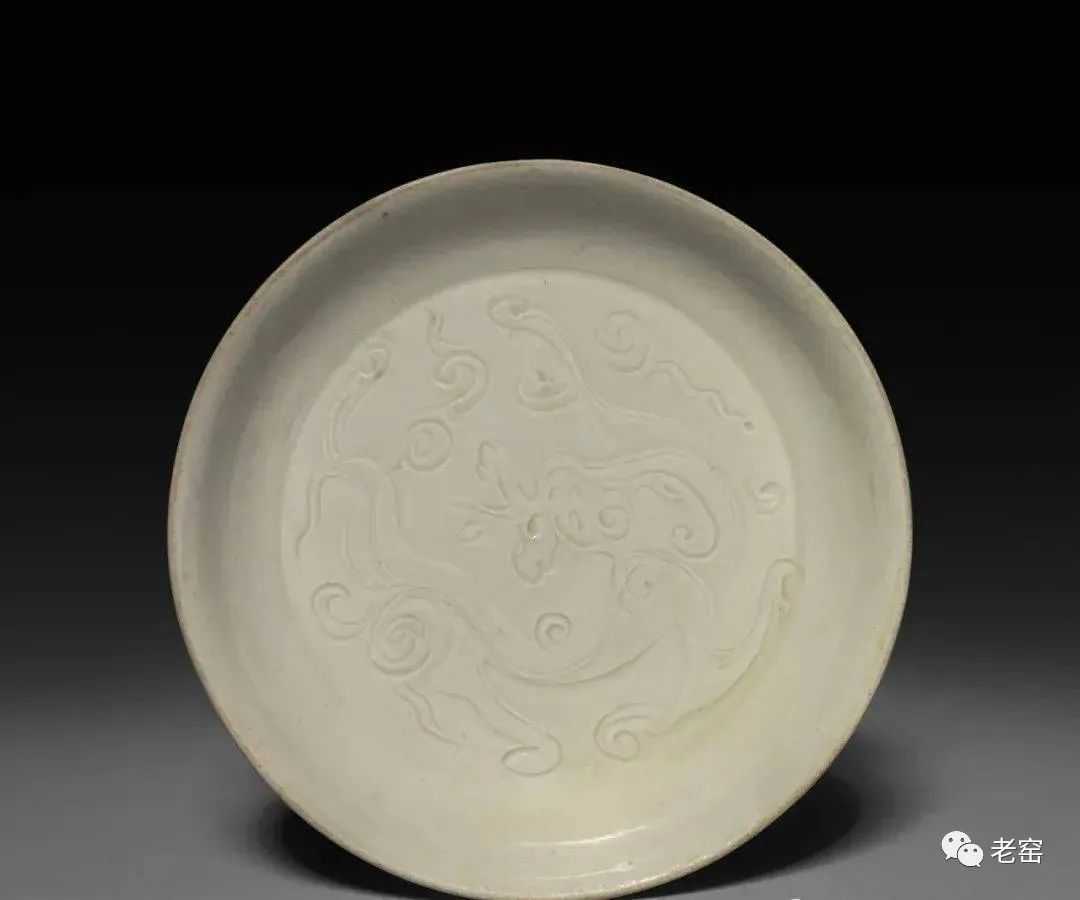金定窑白釉刻花螭龙纹盘